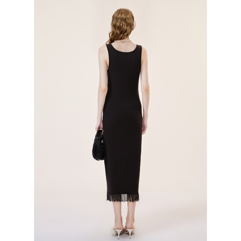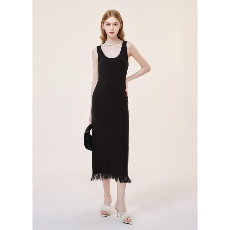 可可尼COCOON2025夏季新款通勤U领流苏背心式连衣裙