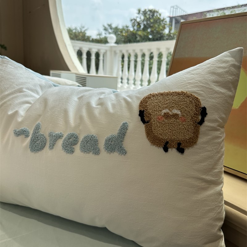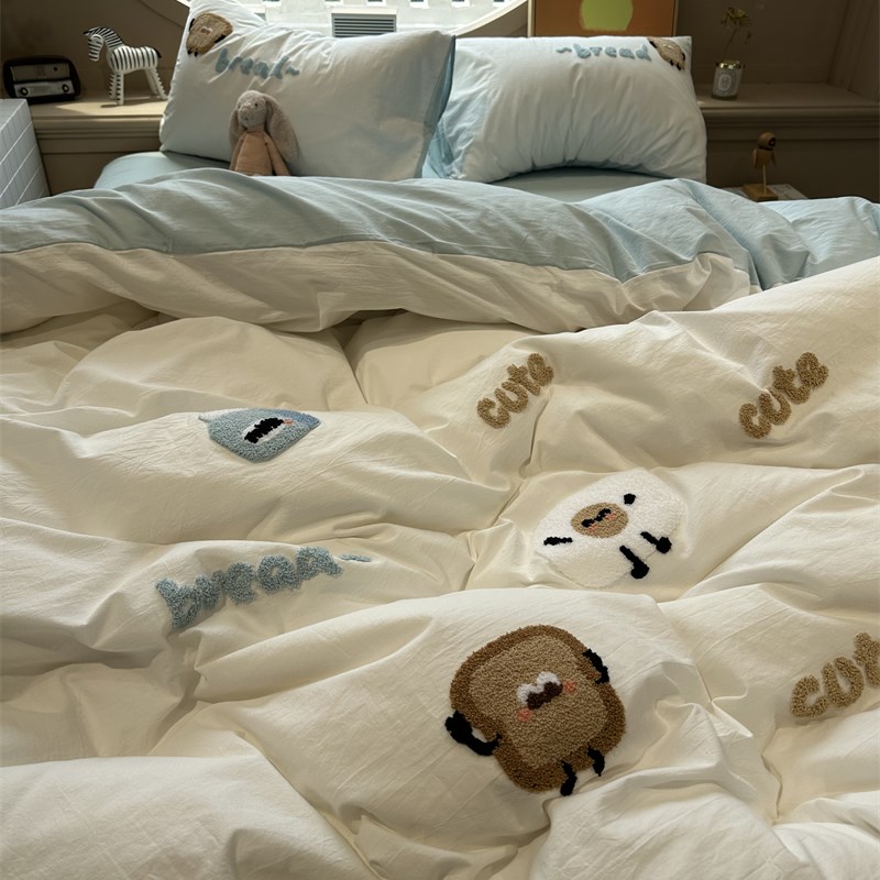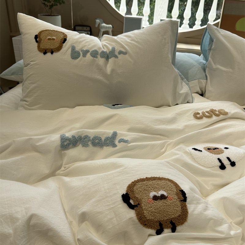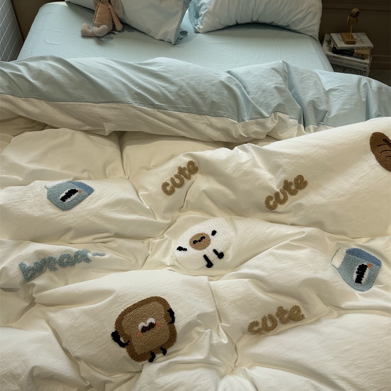 奶fufu~毛巾绣面包牛奶床上四件套全1.5m1.8米公寓被套三件套