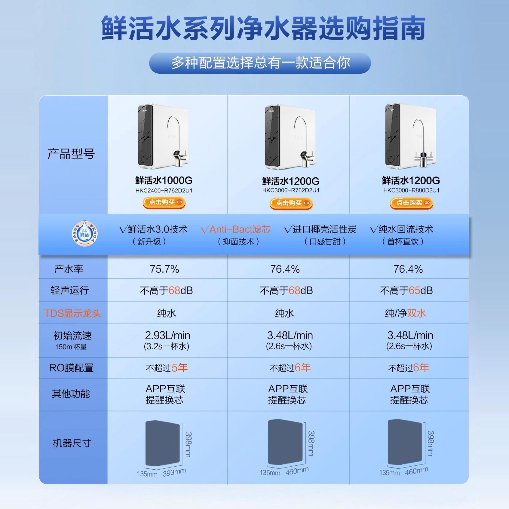 海尔净水器家用直饮鲜活水过滤加热一体厨房ro反渗透净水机1200G