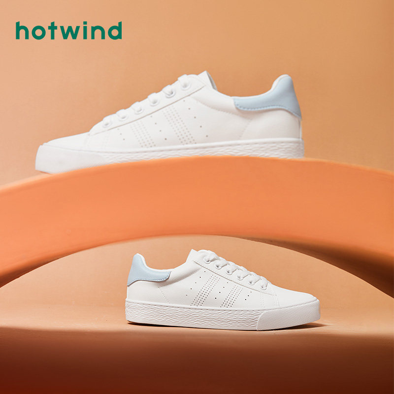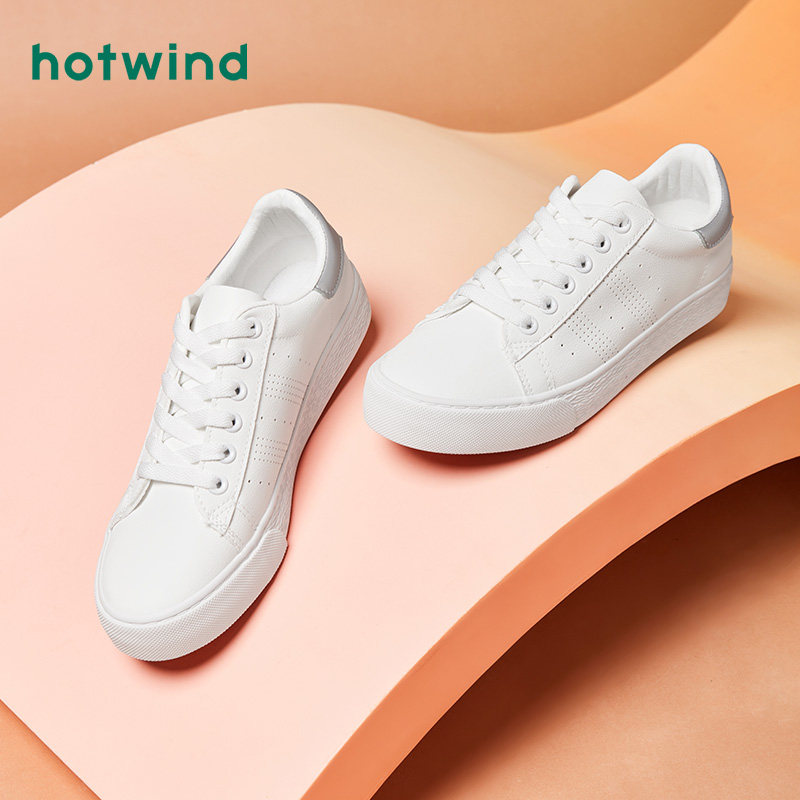 热风2023年秋季新款时尚舒适系带小白鞋透气潮流百搭休闲板鞋女