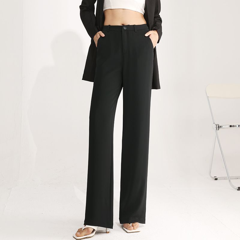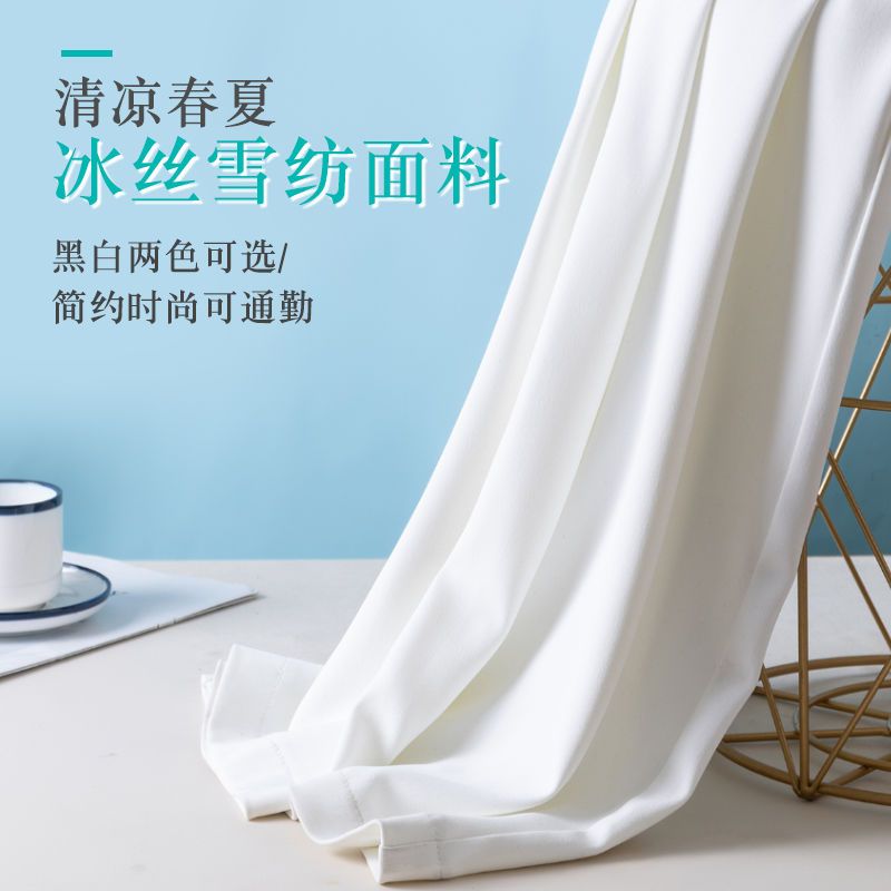 白色高腰阔腿裤女垂感春夏宽松坠感高级新款雪纺西装裤冰丝直筒裤