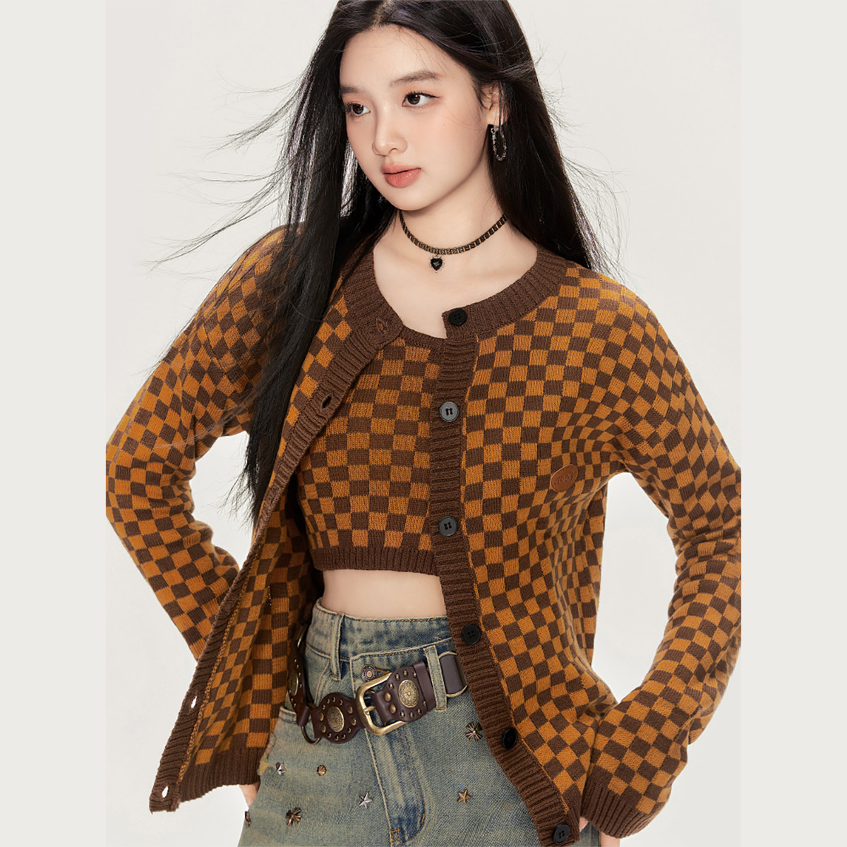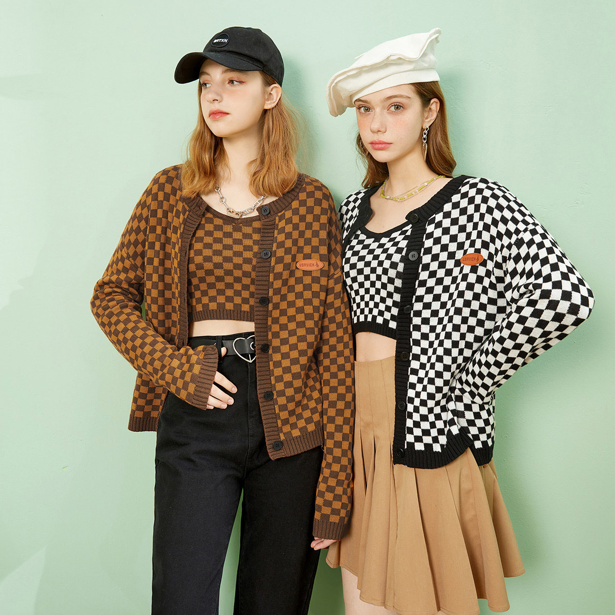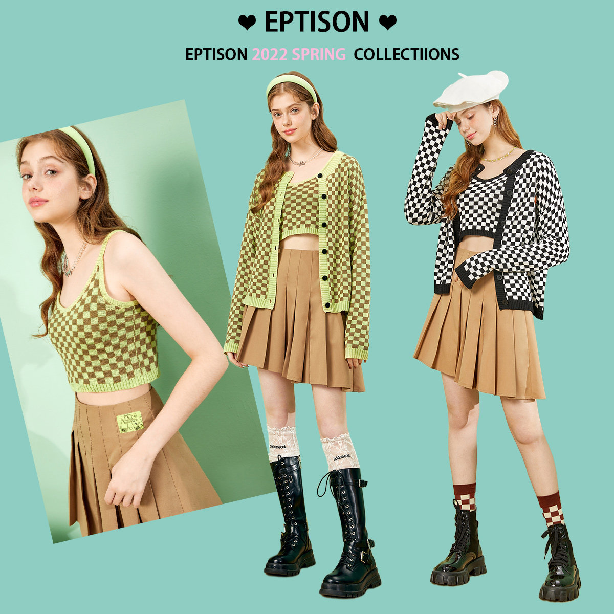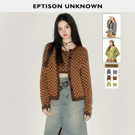 【49/件】EPTISON针织套装女2025秋季新款棋盘格设计感吊带两件套