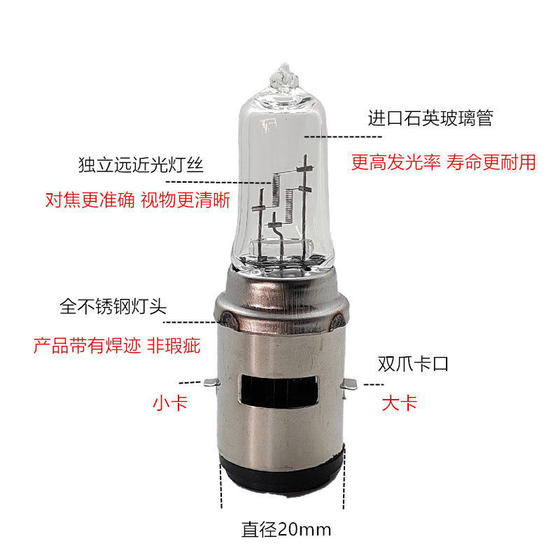 雷正摩托车前大灯12V50W踏板车S2双爪卤素黄光灯泡电动车远近灯泡