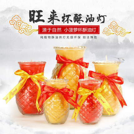 自在园菠萝旺来供佛酥油灯2天5天7天凤梨油灯酥油佛前蜡烛长明灯