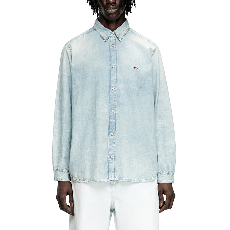 DIESEL/迪赛 春夏男士经典款小徽标长袖牛仔衬衫银泰百货 300217