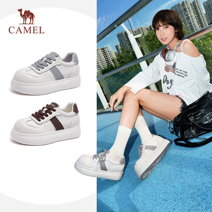 骆驼女鞋2025夏季新款圆头厚底小白鞋学生面包鞋百搭休闲板鞋女