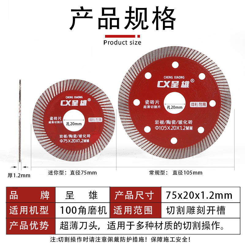 岩板锯片瓷砖专用75mm角磨机超薄切割片地砖清缝片金刚石小型锯片