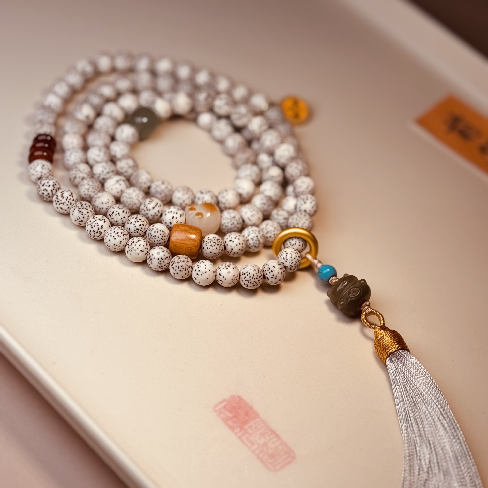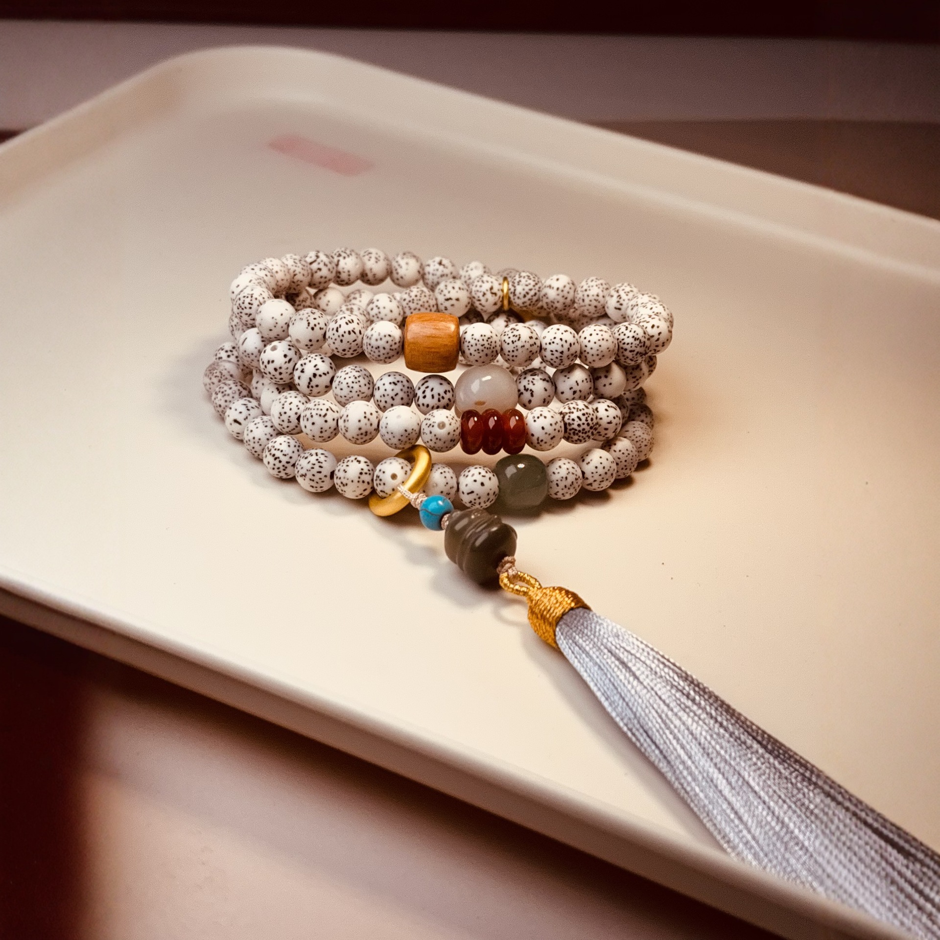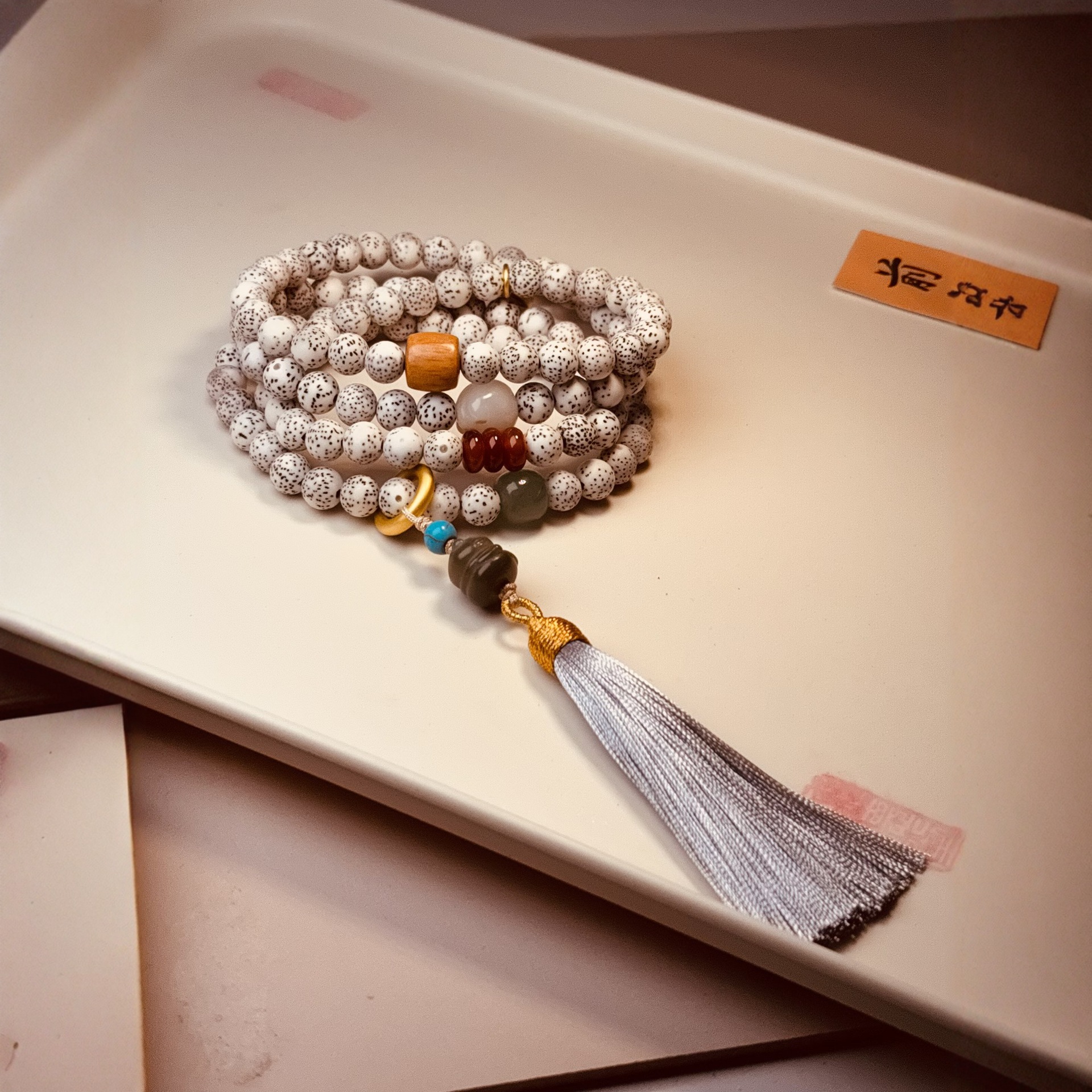 星月菩提手串108颗白玉圆珠佛珠男女款国风毛衣链挂脖手链