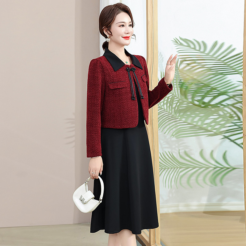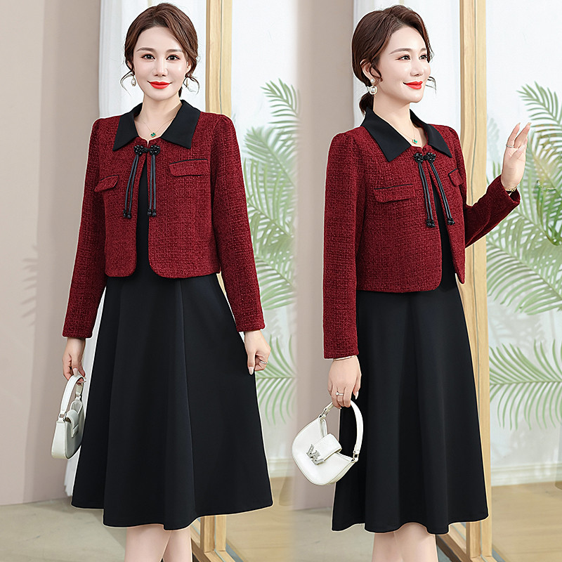 中老年女装春秋季长袖裙子气质两件套洋气妈妈秋装连衣裙高贵套装