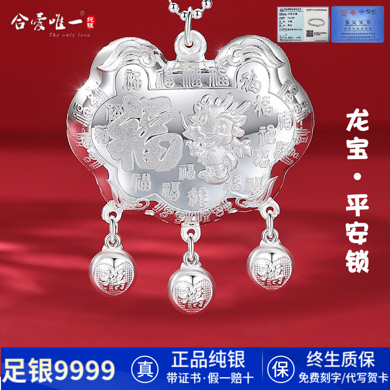 足银9999纯银锁金龙长命锁吊坠长生锁新生婴儿男女宝宝手镯小孩子