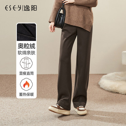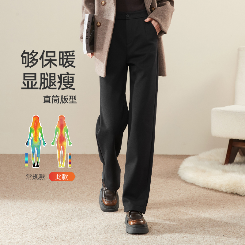 逸阳加绒加厚窄版西装直筒裤女冬新款高腰保暖宽松显瘦阔腿休闲裤