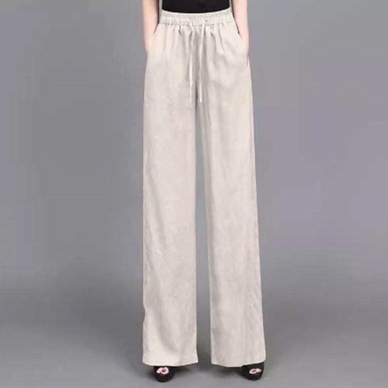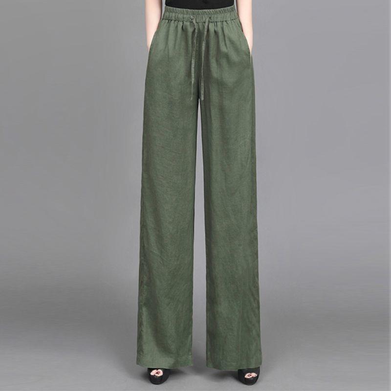 松紧腰垂感棉麻阔腿裤女春夏高腰大码阔腿裤宽松显瘦直筒休闲长裤