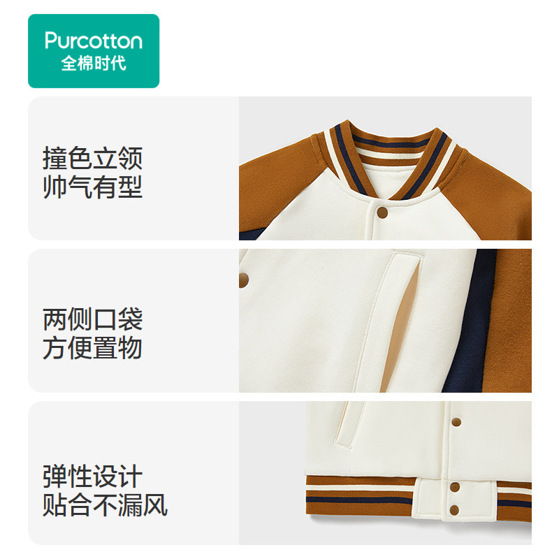 全棉时代儿童外套棉服男童针织棒球运动服秋冬季新款加厚款保暖