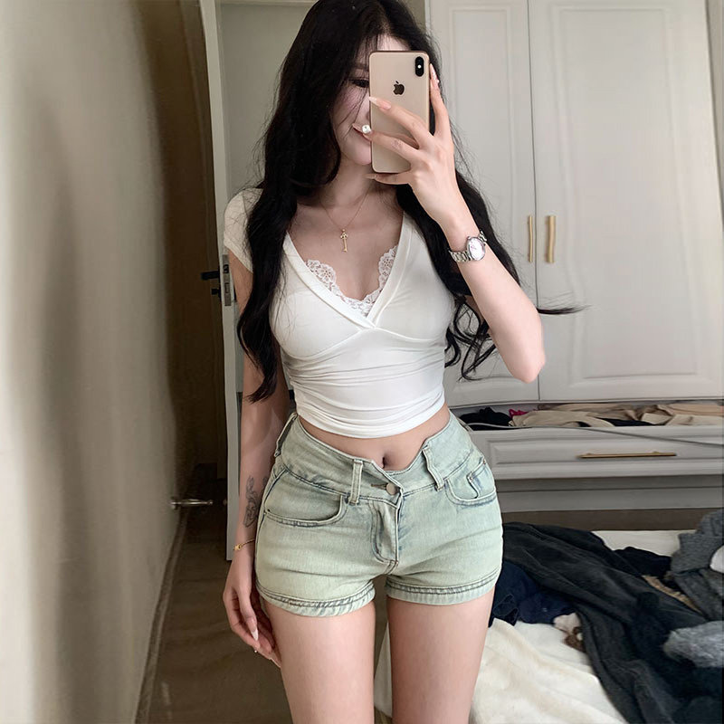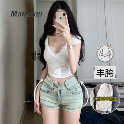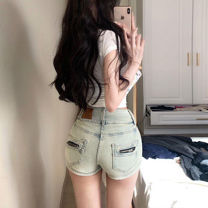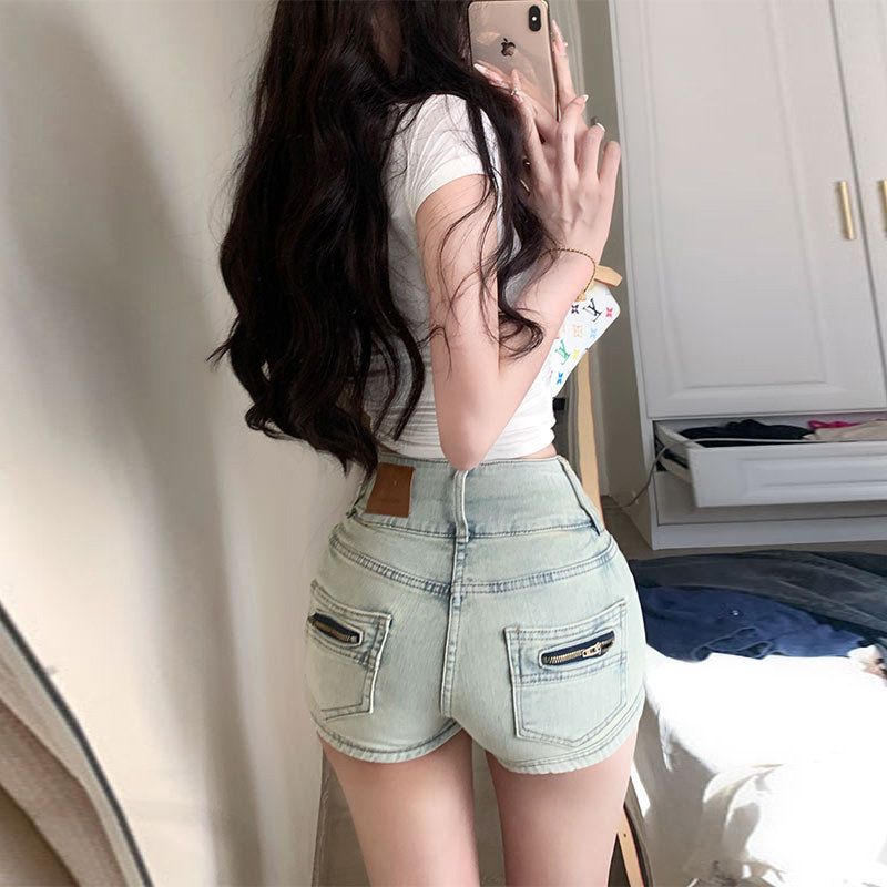 紧身丰胯牛仔短裤女2025冬季新款后拉链设计高腰弹力显瘦性感热裤