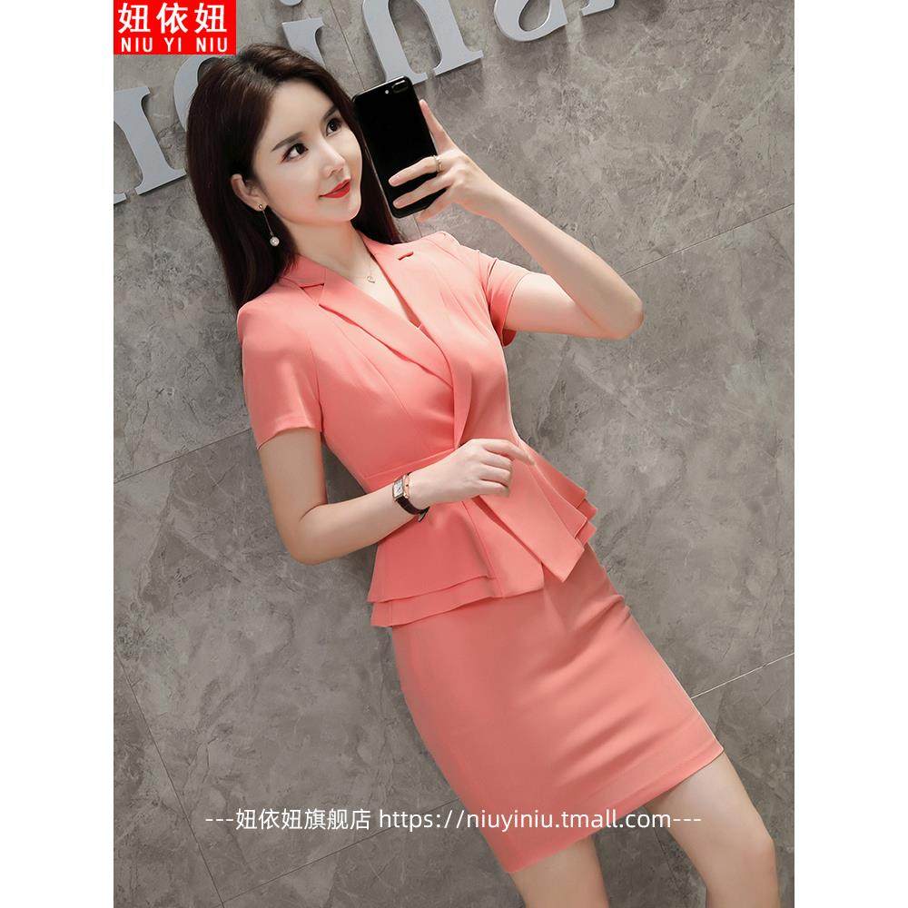 夏季新款高端时尚职业套装女短袖工作服气质女神范美容师前台工装
