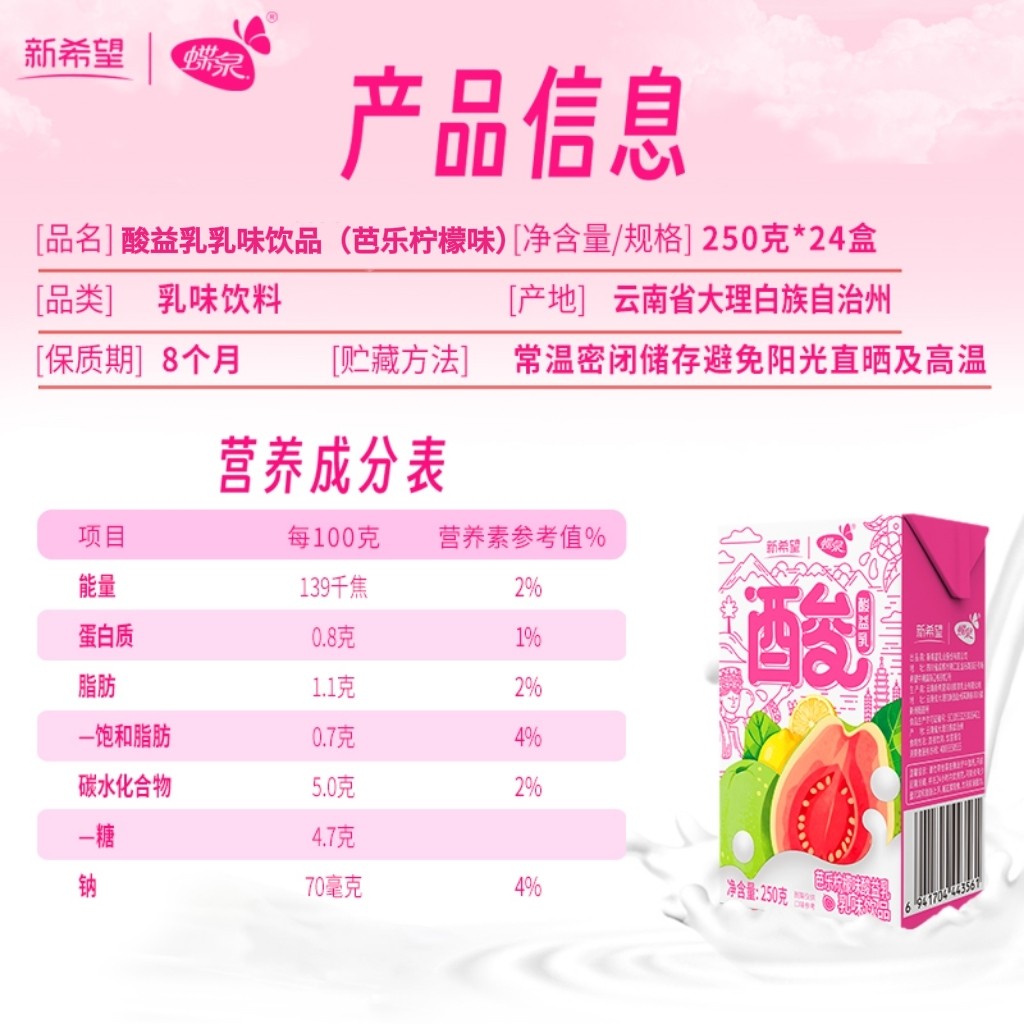 新希望蝶泉芭乐味酸益乳乳酸菌饮品整箱24盒早餐营养饮料