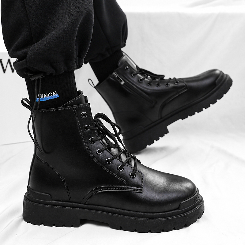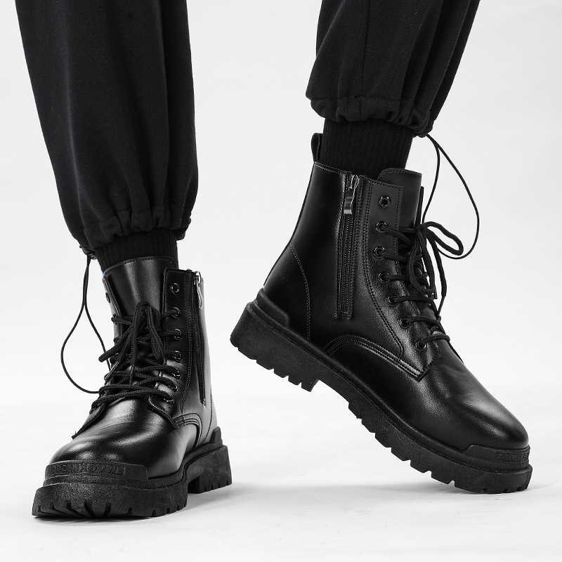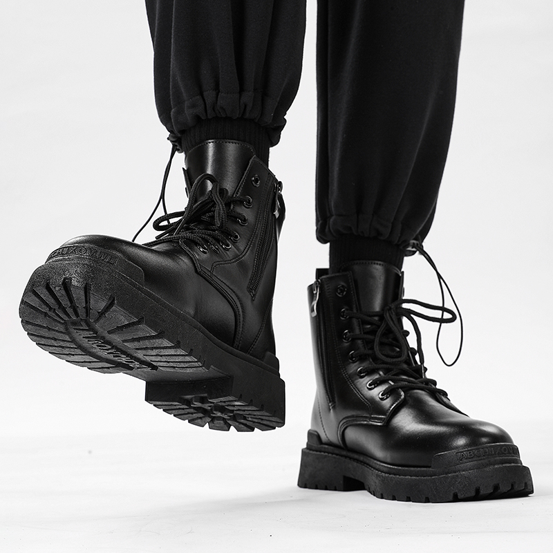 八哥男鞋2025新款防滑防水高帮秋冬休闲上班工作皮鞋马丁加绒棉鞋