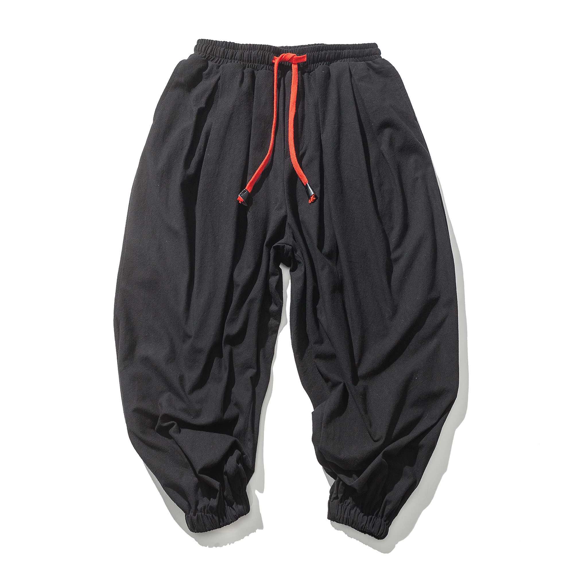 中国风亚麻男裤子棉麻宽松大码男装胖子休闲九分裤哈伦裤灯笼束脚