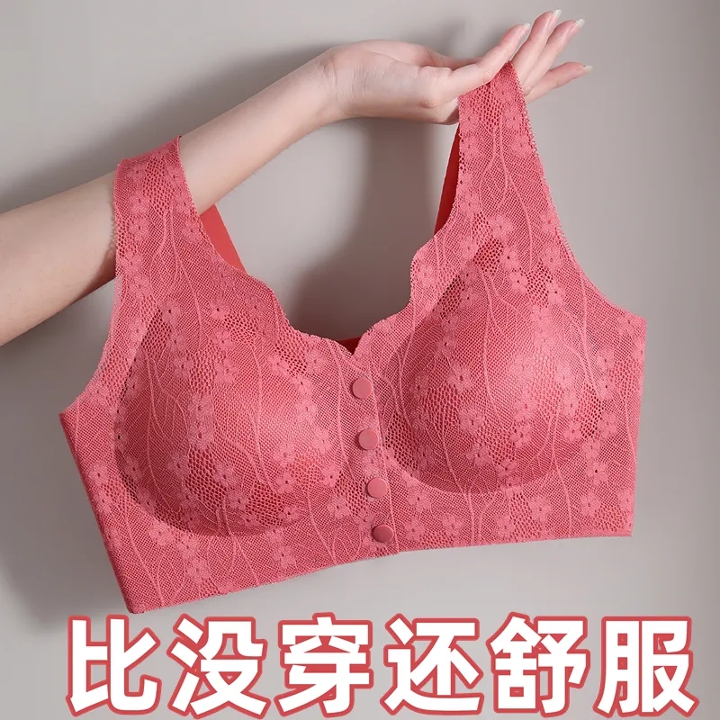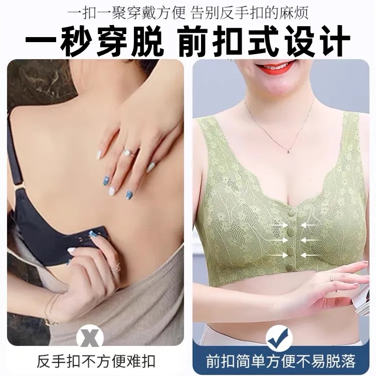 妈妈中老年前开扣高档内衣舒适胸罩聚拢防下垂运动文胸薄款前扣