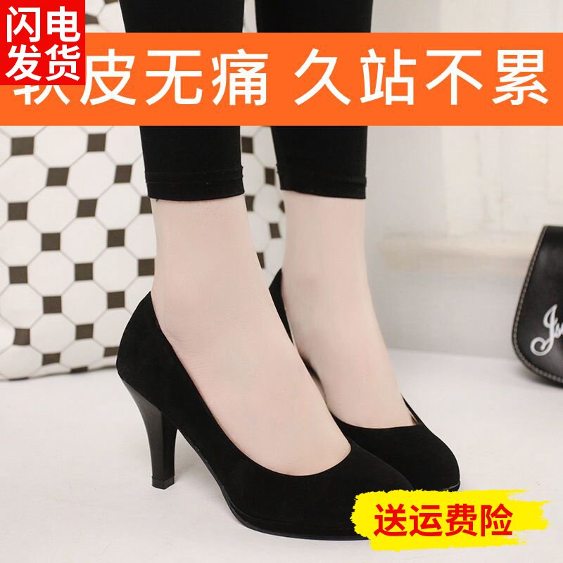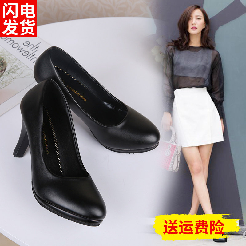 大学生礼仪高跟鞋女细跟大码黑色职业工作皮鞋中跟防水台圆头单鞋
