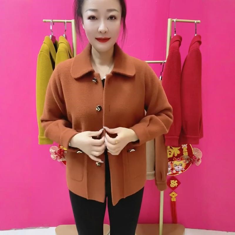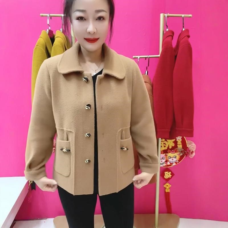 气质妈妈外套女春秋短款呢子大衣中老年女装秋装新款洋气减龄上衣