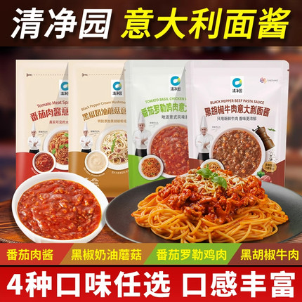 清净园意大利面酱番茄肉酱黑胡椒奶油罗勒蘑菇意式肉沫拌面酱