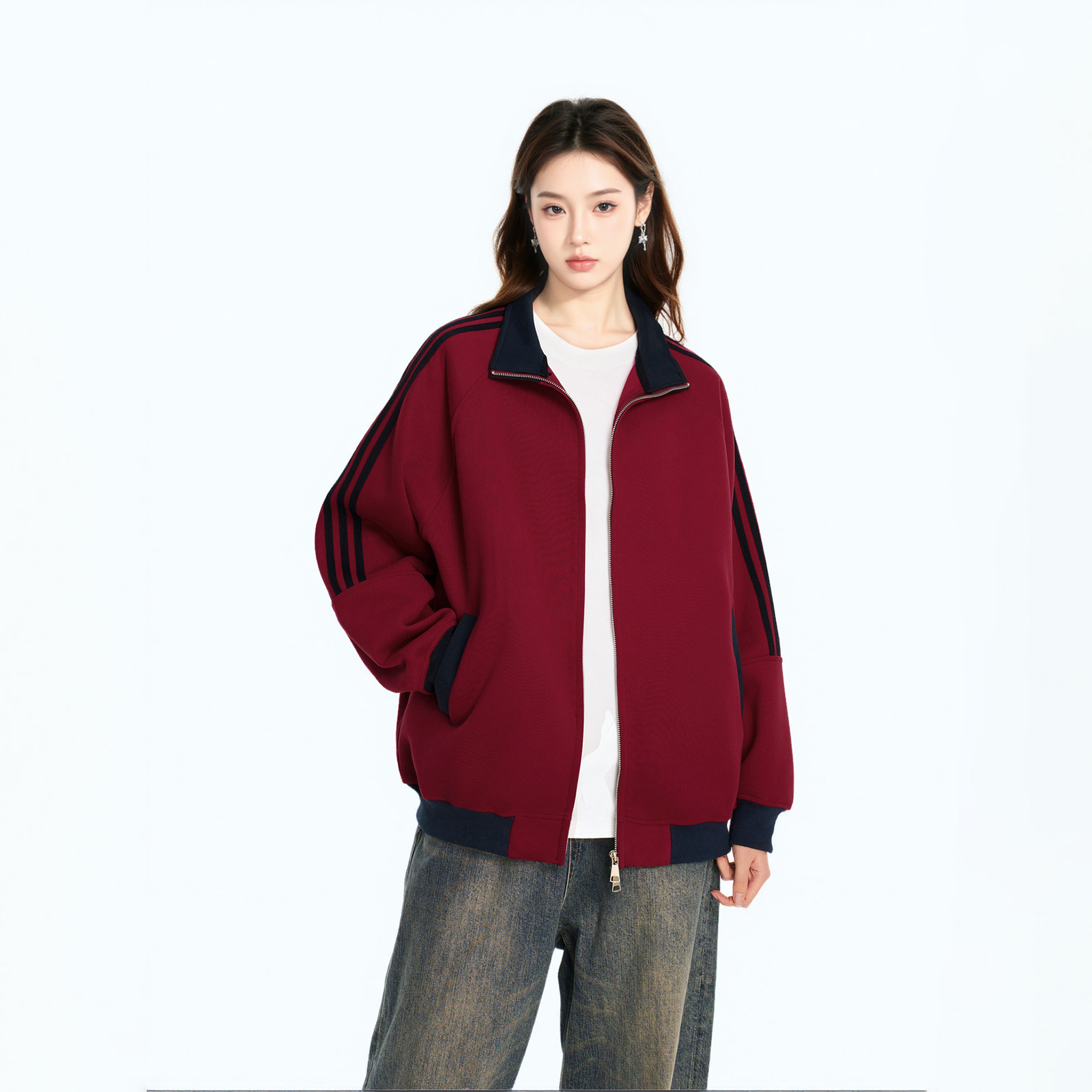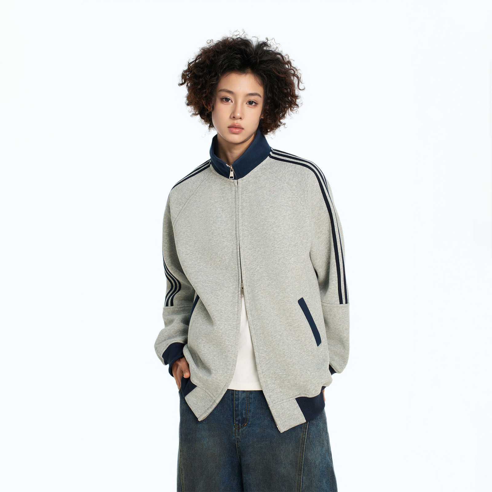 美式慵懒春秋卫衣女小个子运动棒球服拼接拉链开衫外套休闲上衣