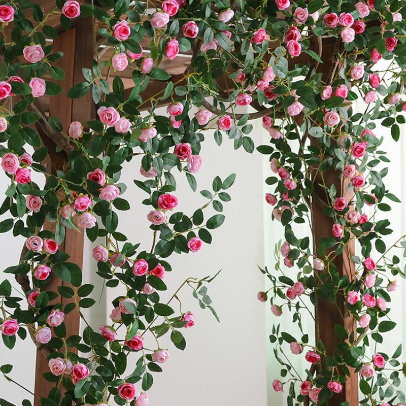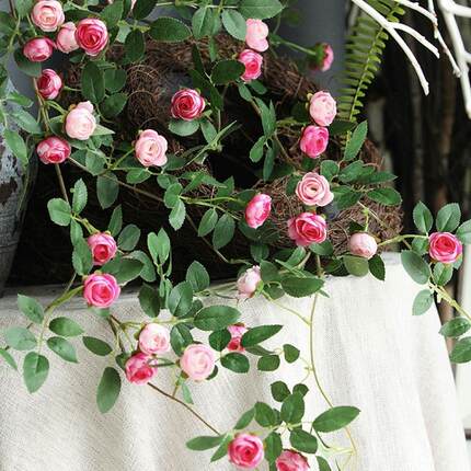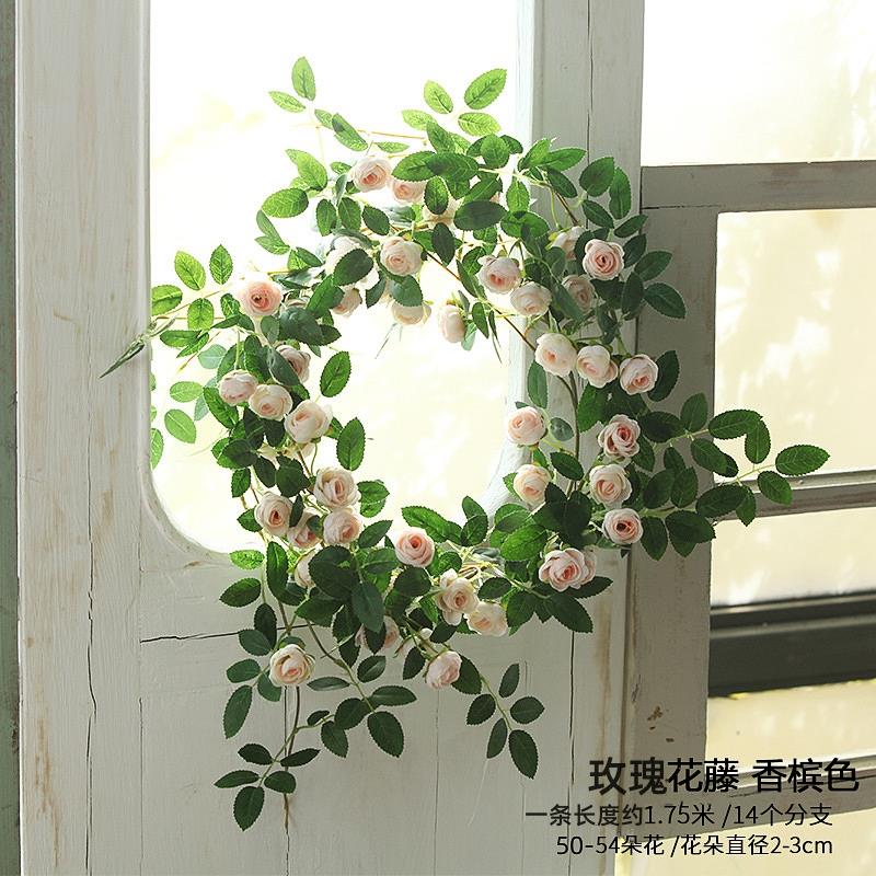 仿真花藤条假花玫瑰花藤铁丝杆藤蔓室内室外简约装饰攀爬造型花卉