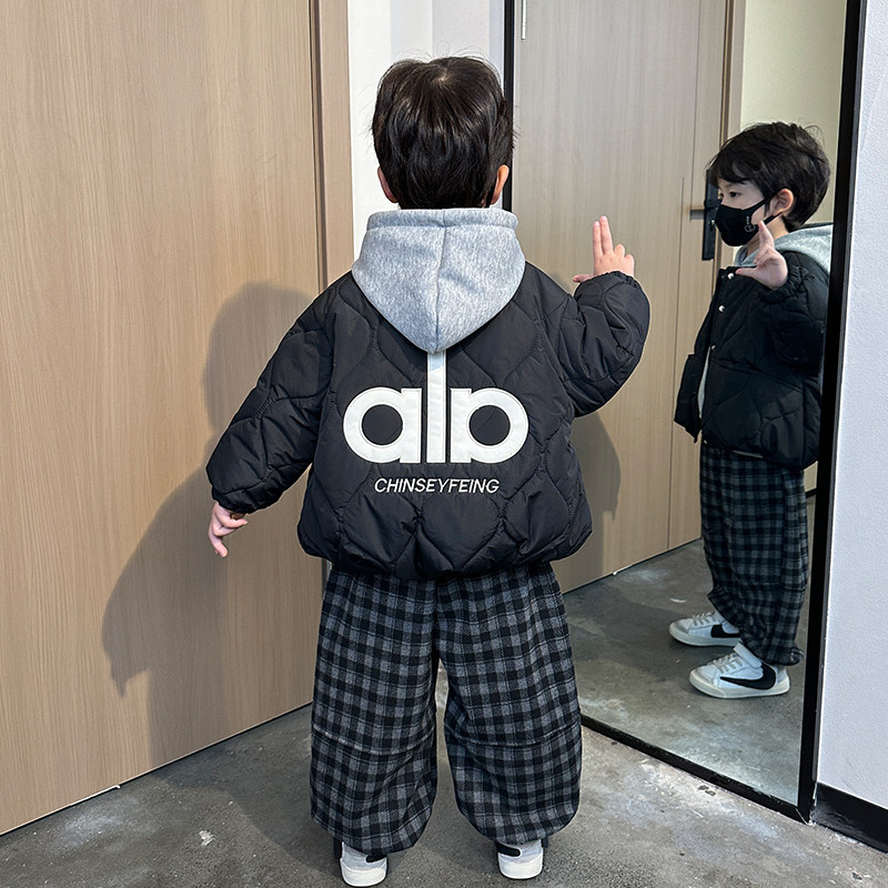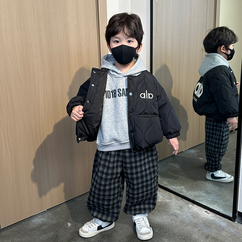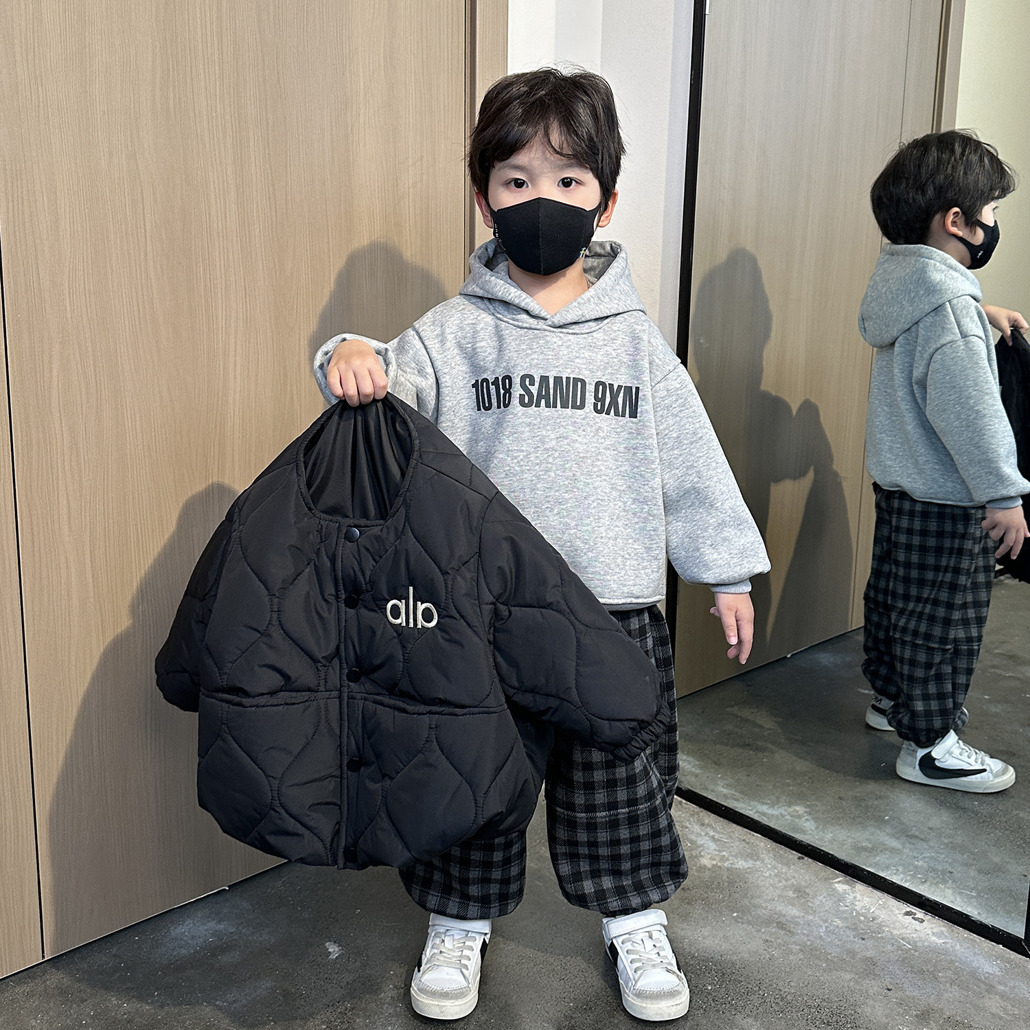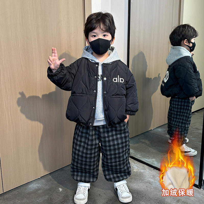 男童冬装加厚套装2025新款时髦儿童秋冬男孩加绒卫衣棉服三件套潮