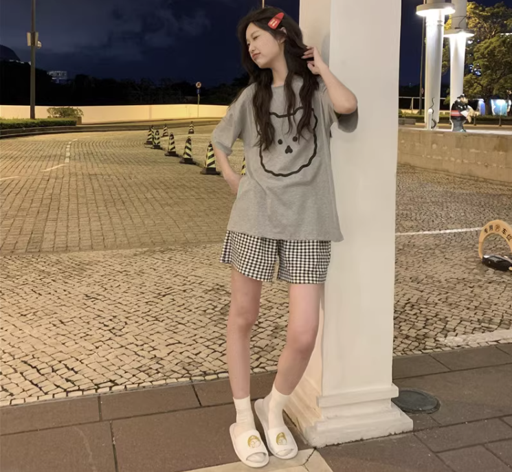 网红风睡衣女夏季短袖短裤纯棉可爱小熊学生可外穿休闲家居服套装