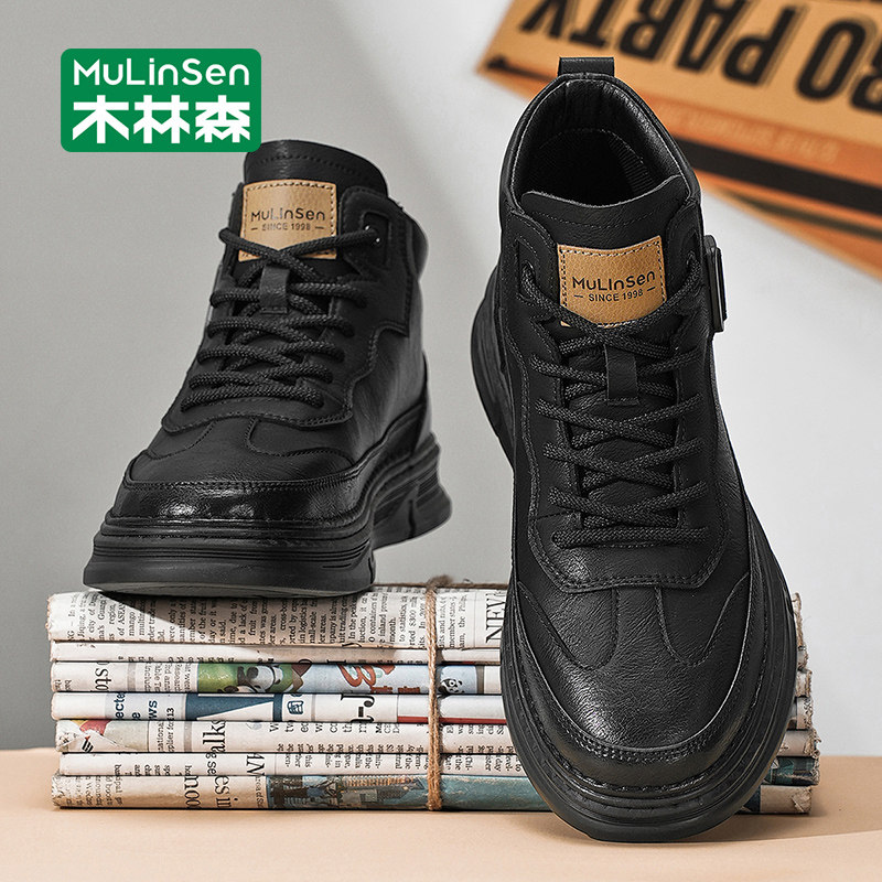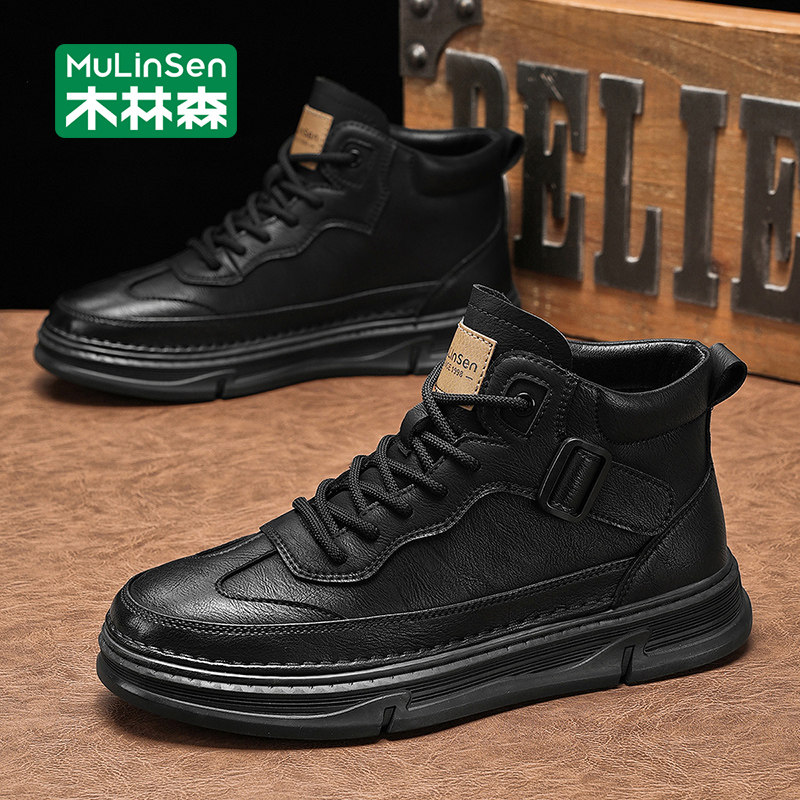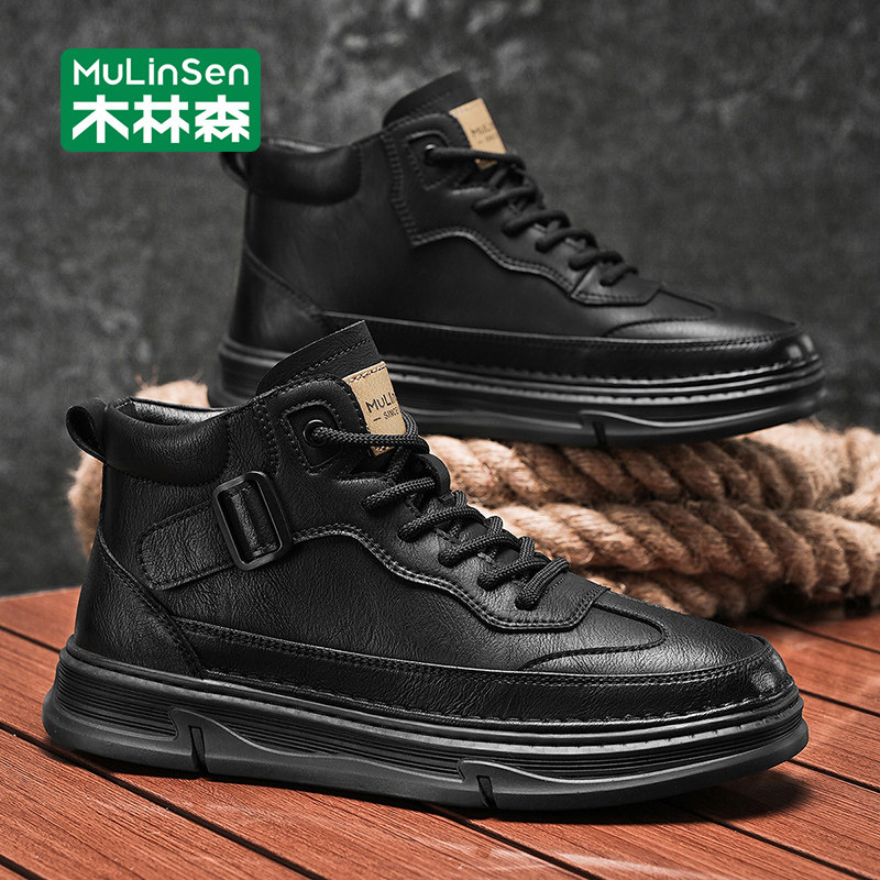 木林森正品男鞋2025新款秋季皮鞋男款运动休闲高帮鞋子软底马丁靴