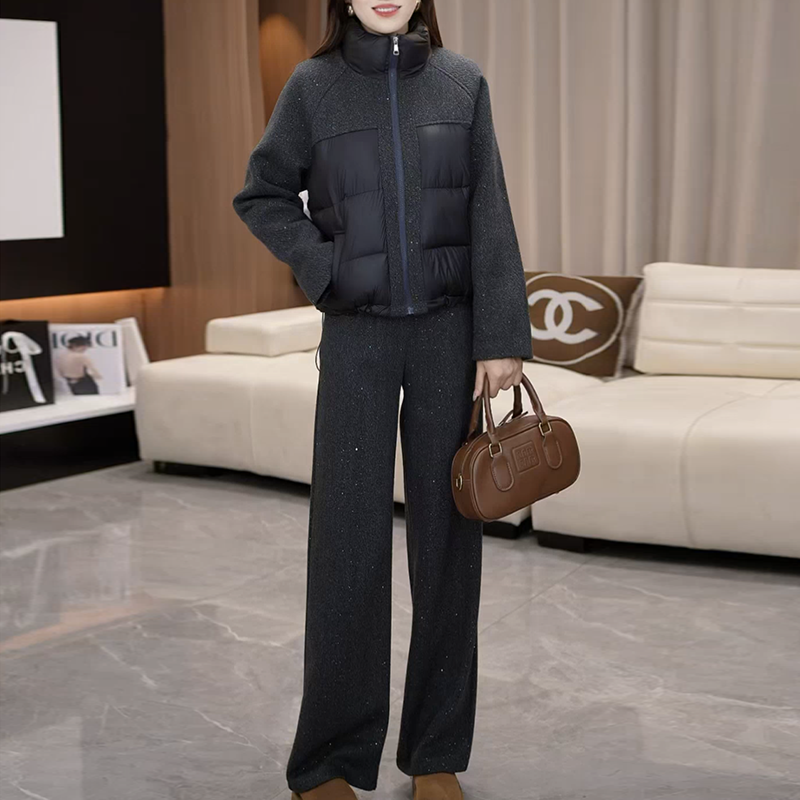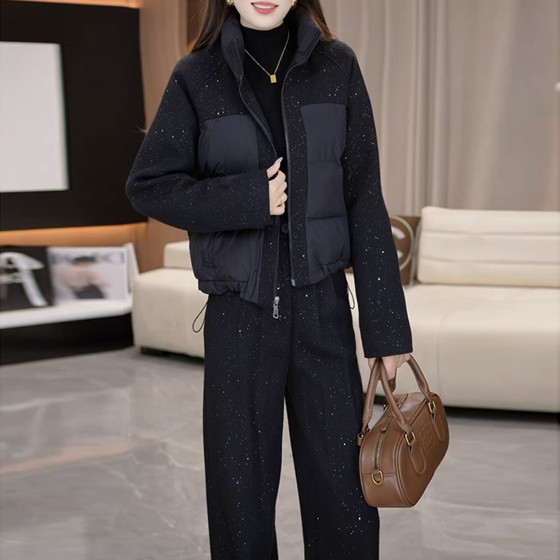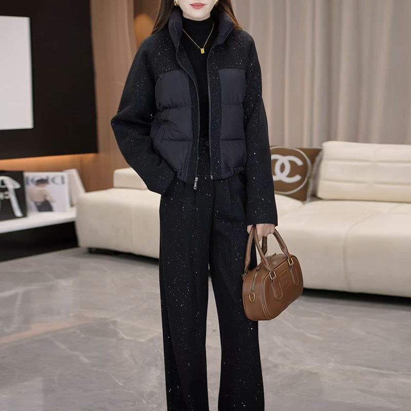 时尚休闲套装女2025冬季新款洋气加厚保暖立领棉服阔腿裤两件套潮
