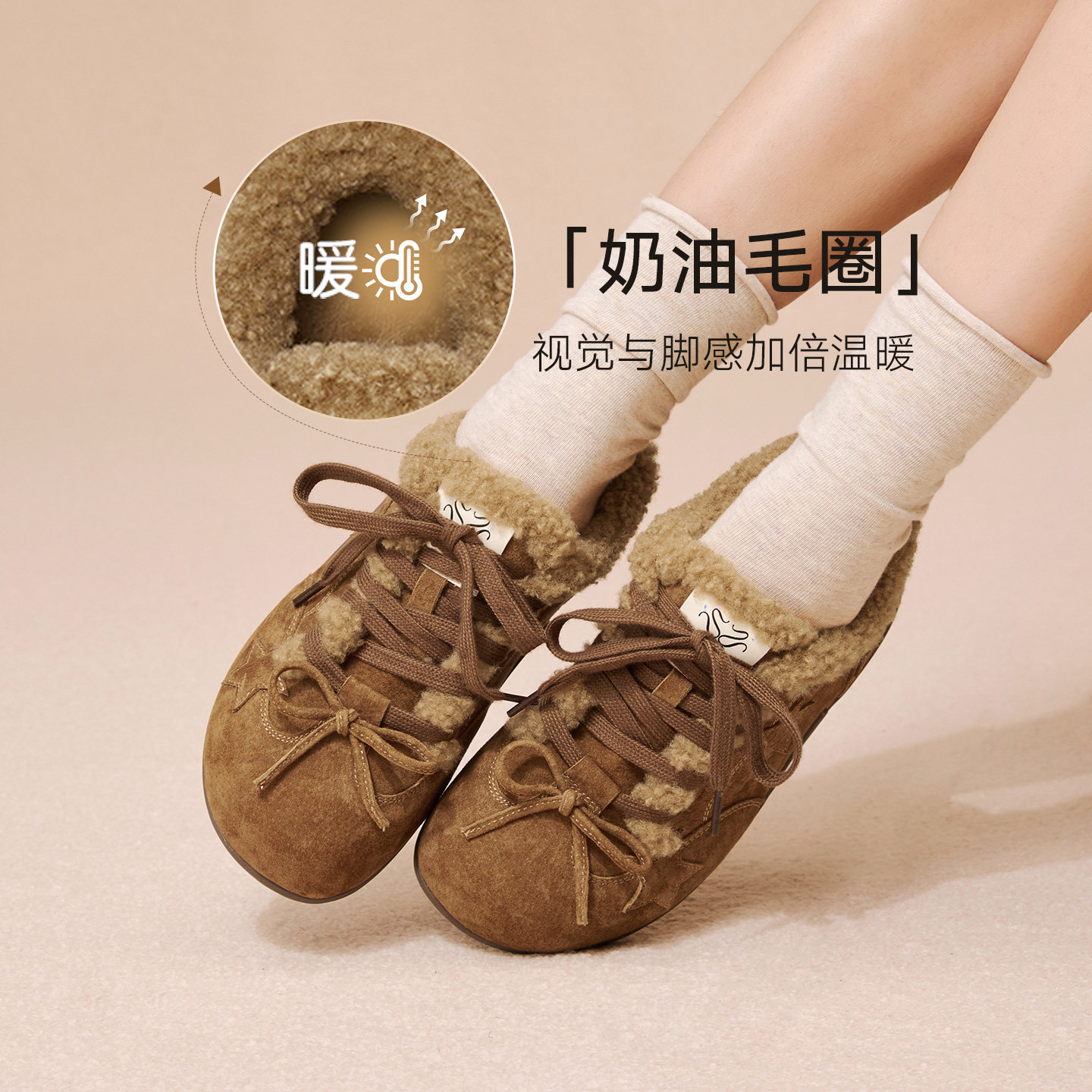 【k姐推荐】百思图2025冬季新款德训鞋休闲运动加绒女鞋A2507DM5
