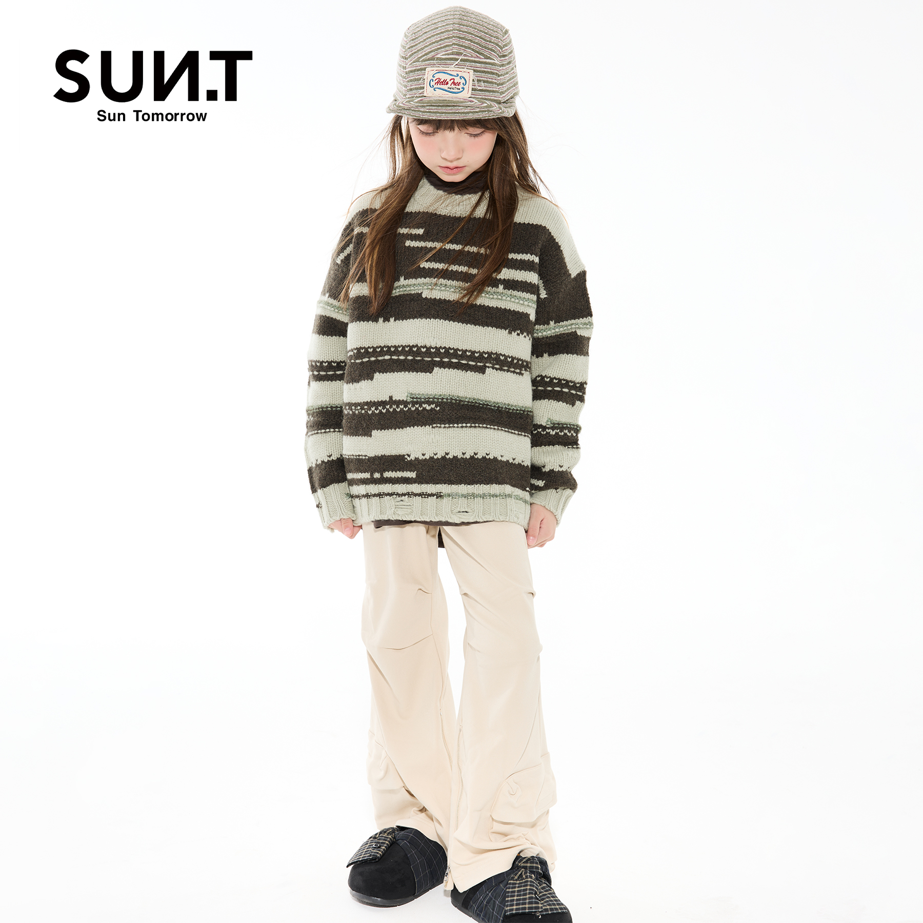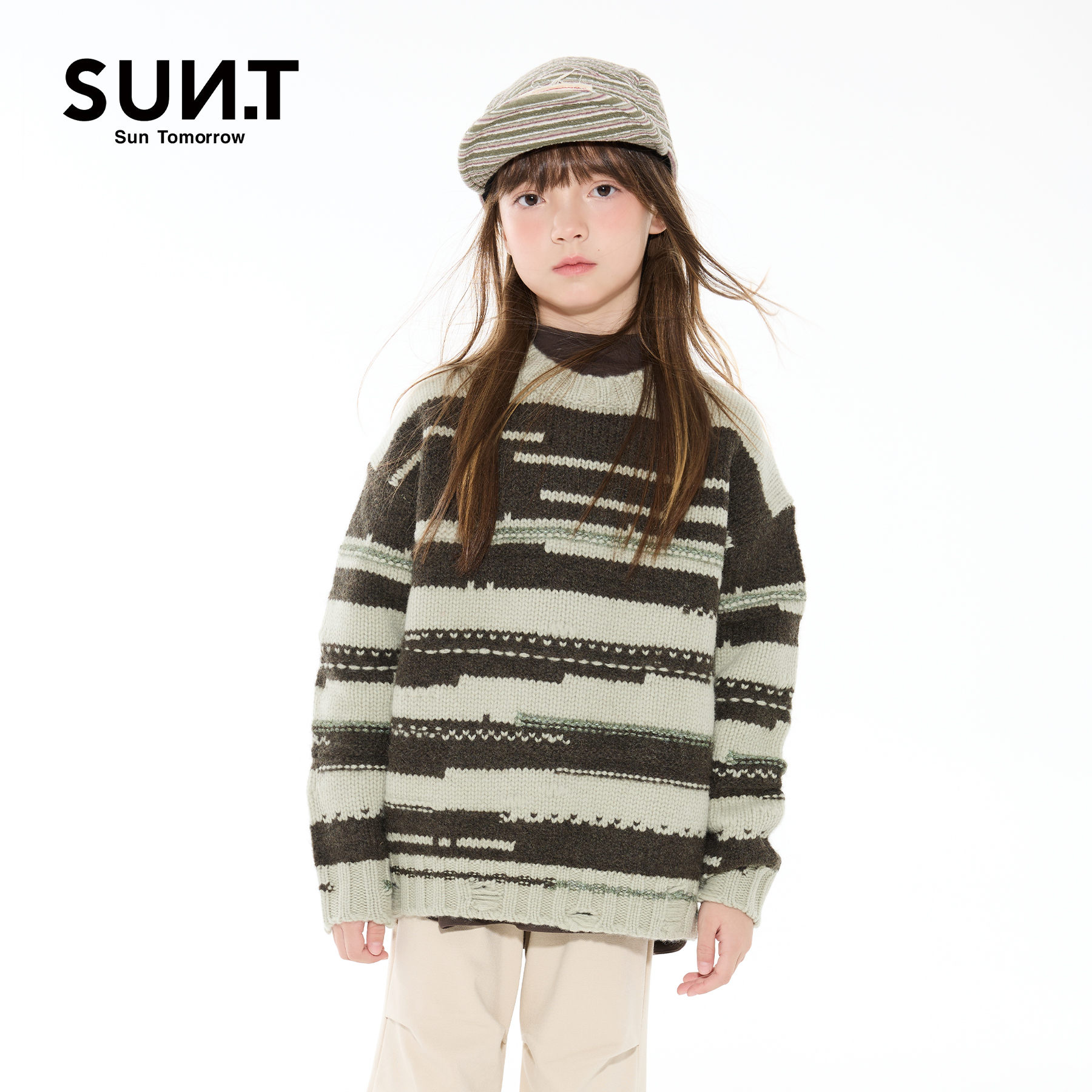 suntomorrow儿童羊毛针织衫2025冬装新款女童加厚套头条纹羊毛衫