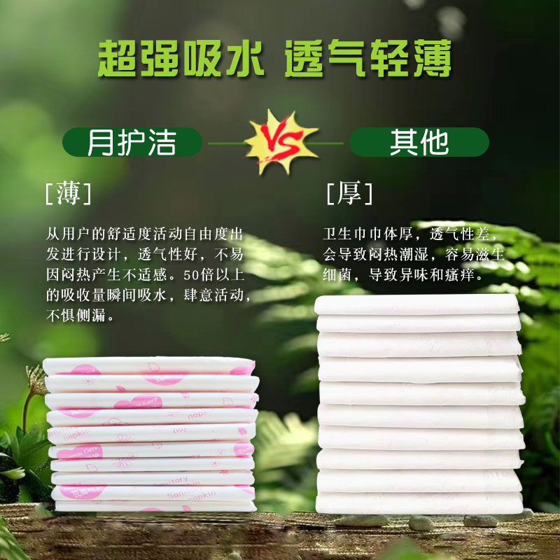月护洁艾草卫生巾日夜用加长超长组合装超薄透气棉柔抑菌姨妈正品