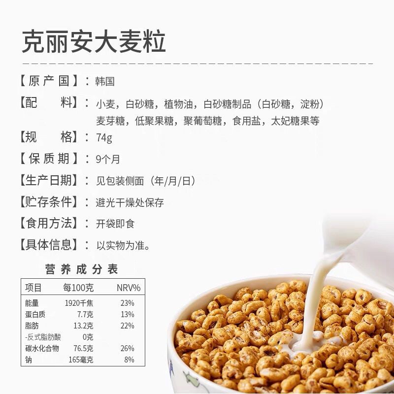 [买2送2]韩国进口克丽安大麦粒膨化爆米花甜天麦休闲零食74g