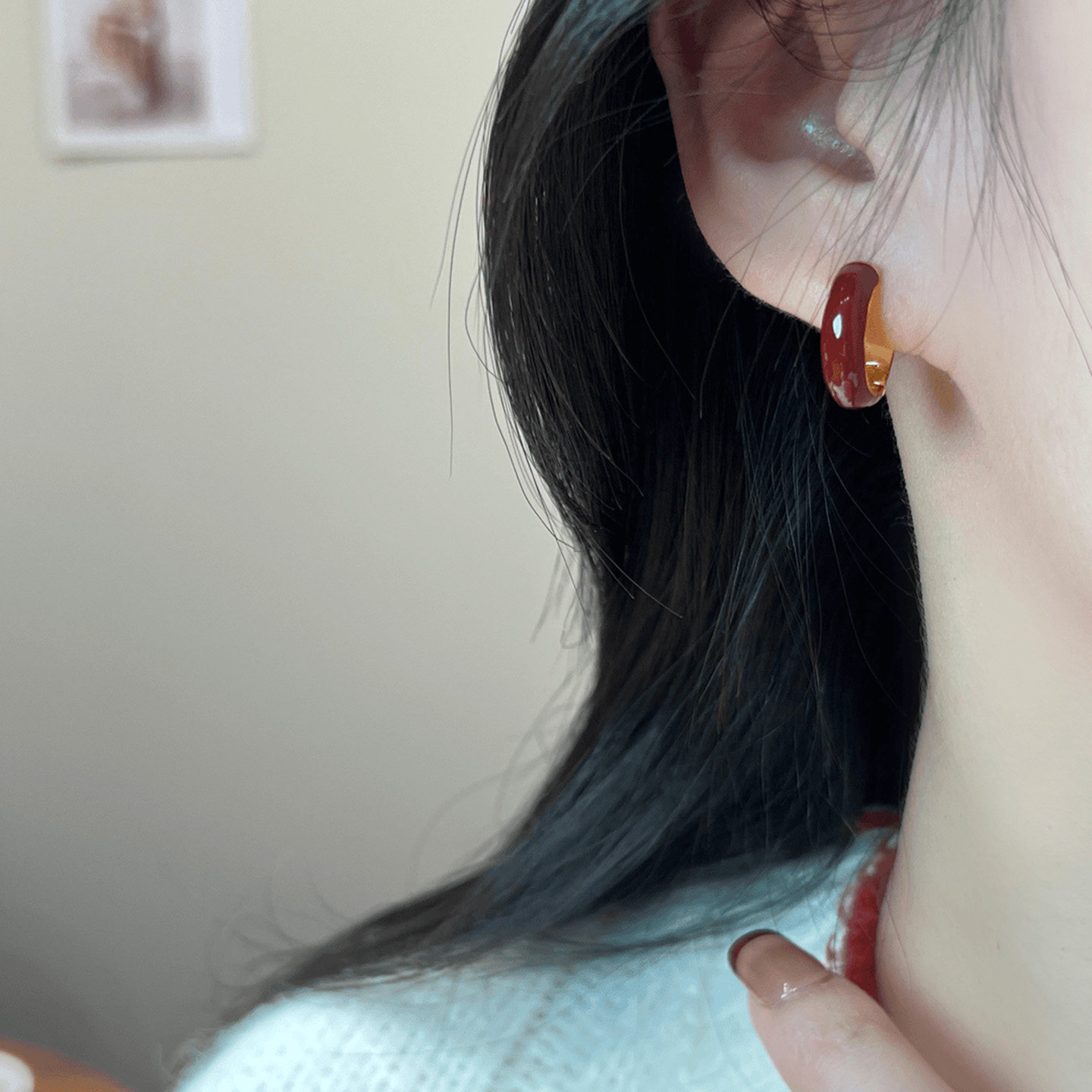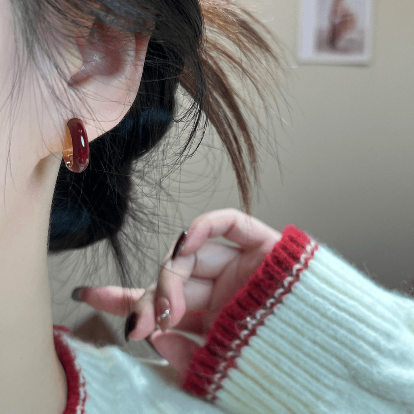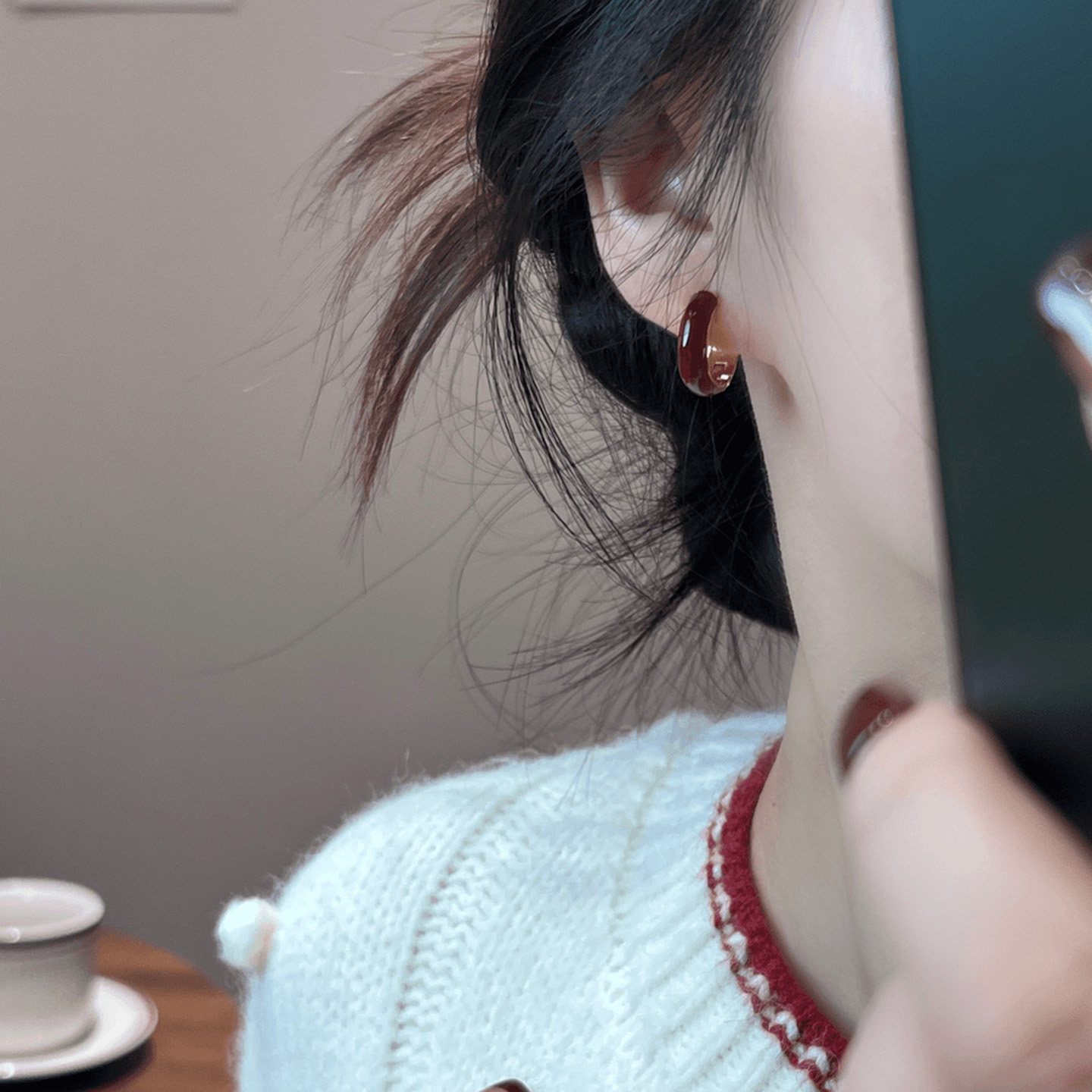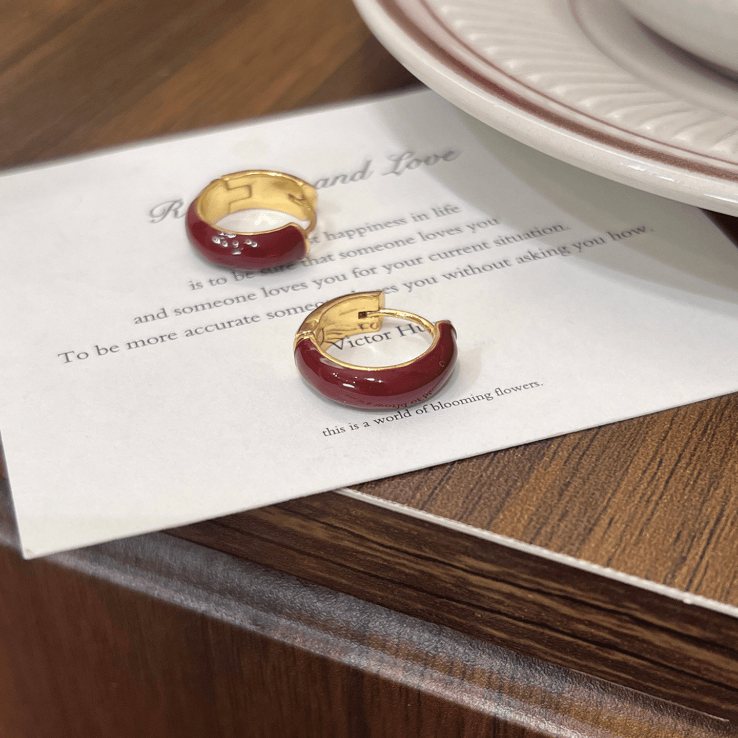 秋冬法式复古红色耳环女2025新款气质轻奢耳圈精致设计感小众耳饰