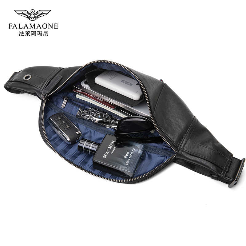 法莱阿玛尼真皮腰包高级感单肩包新款日韩百搭小挎包大容量胸包男