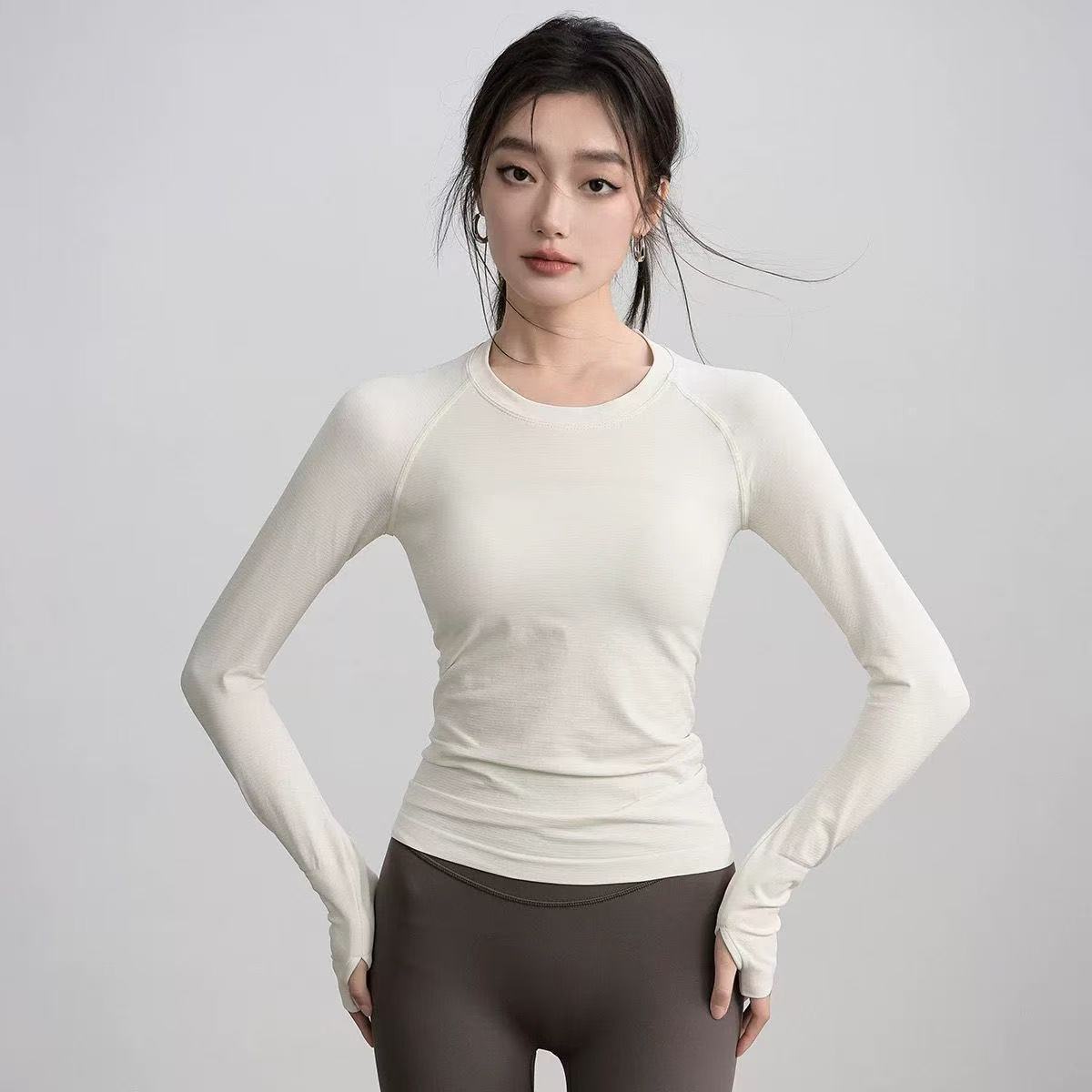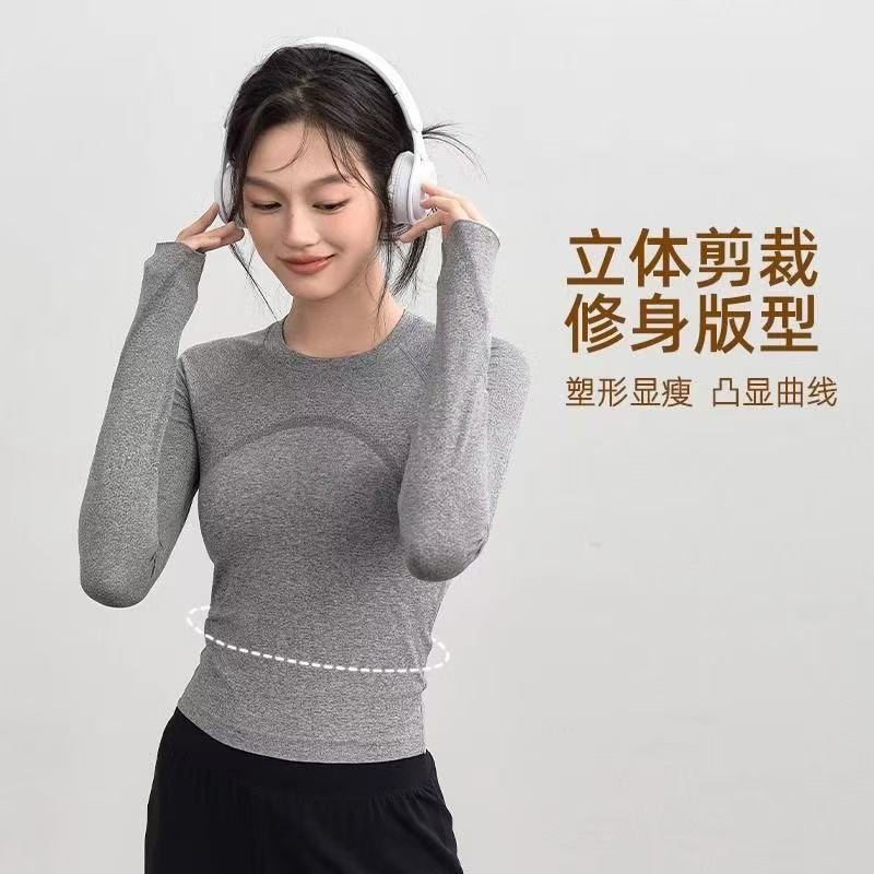 秋冬圆领瑜伽服运动长袖速干显瘦外穿运动健身上衣跑步健身服女