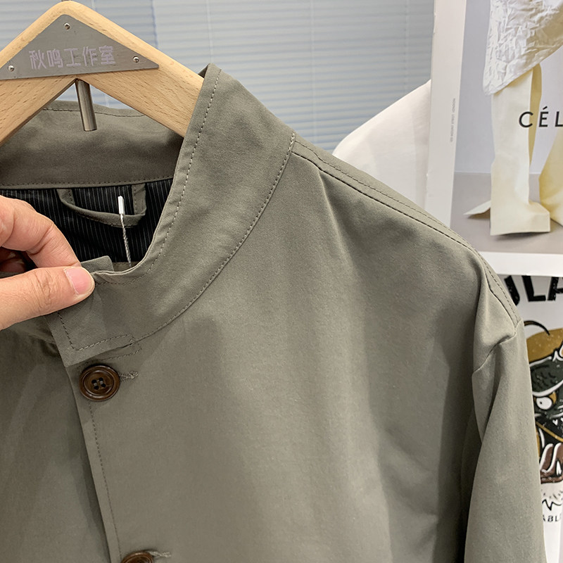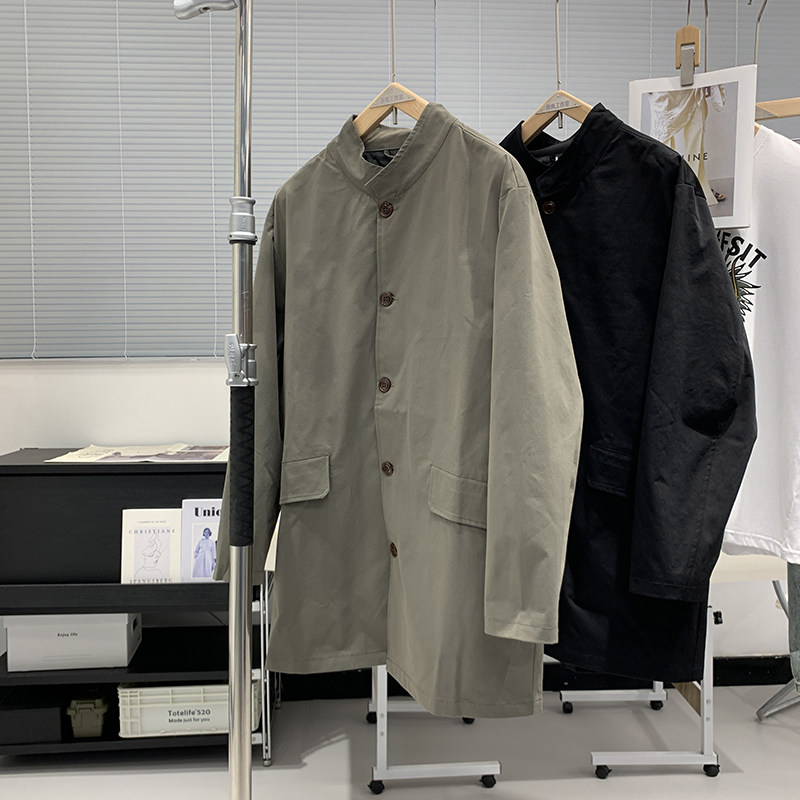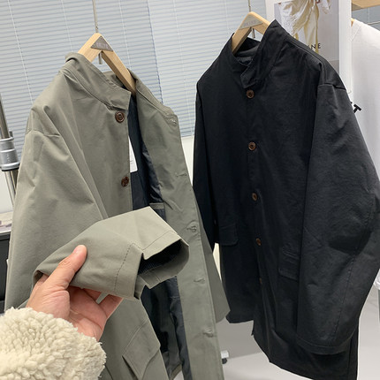 日系工装式 叠穿 中长款 复古春秋休闲立领大口袋风衣男女外套 潮