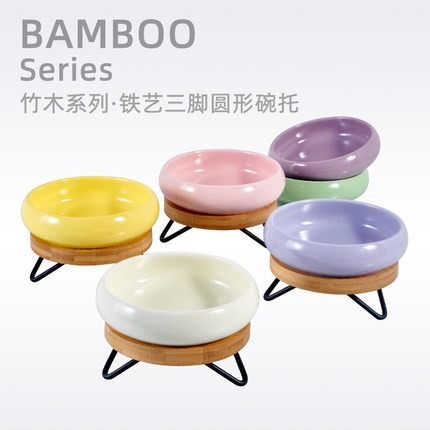 hocc猫碗陶瓷增高橡木架水碗粮碗