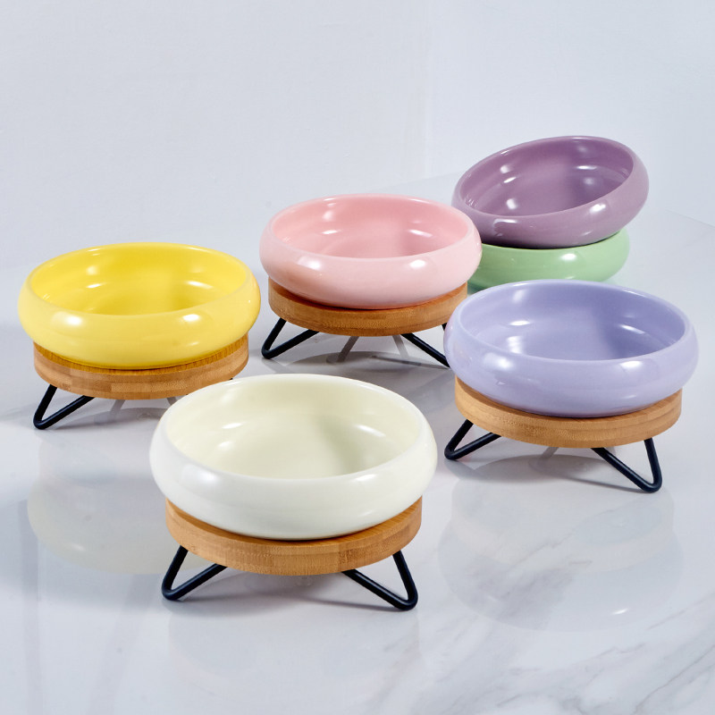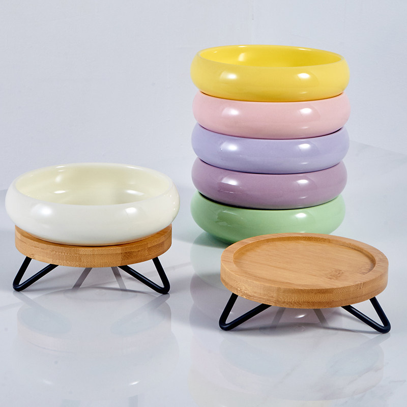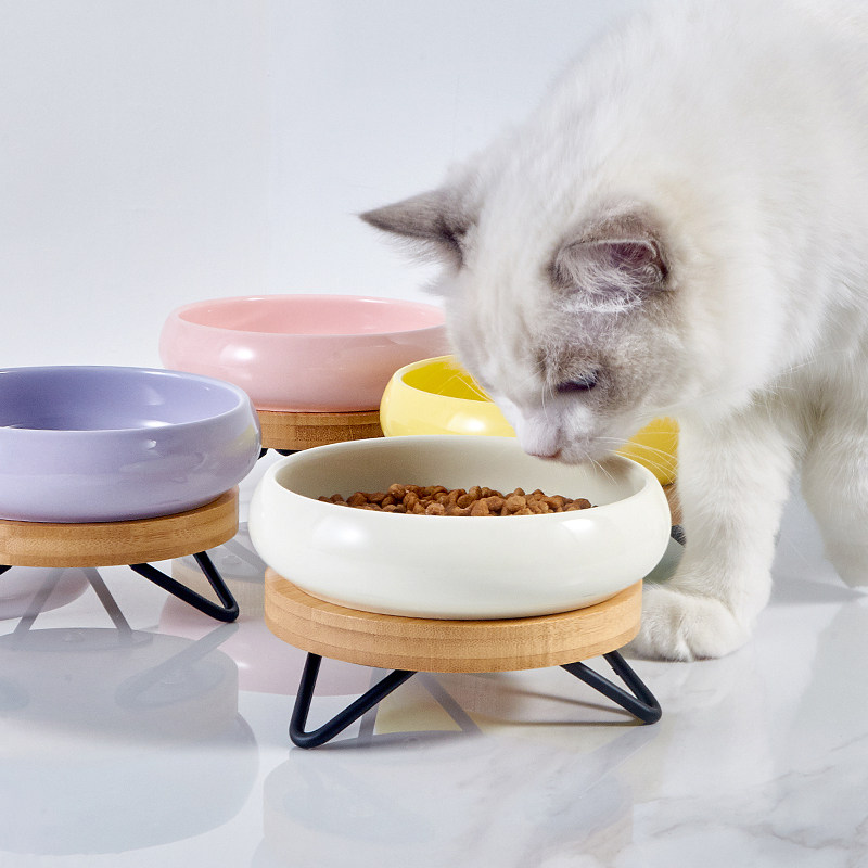 hocc陶瓷猫碗猫咪吃饭幼猫食盆罐头餐盘矮脚猫碟盘增高木架宠物碗