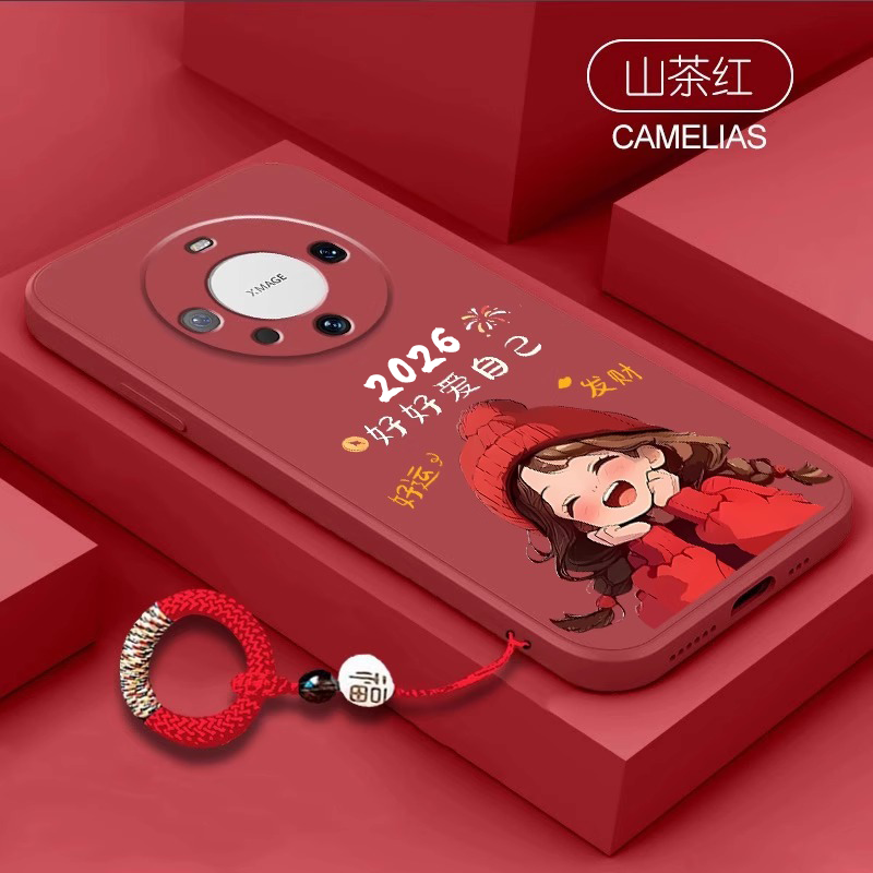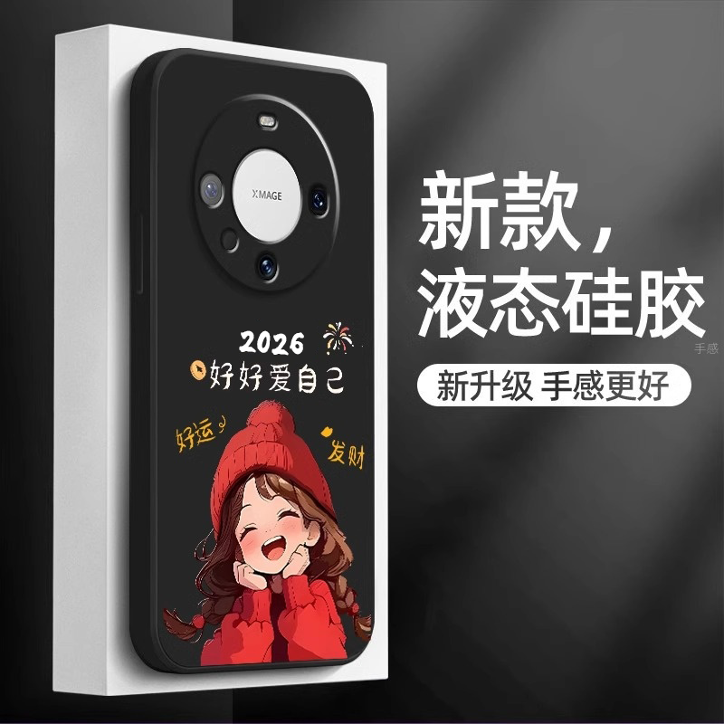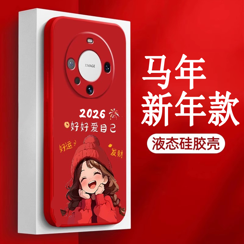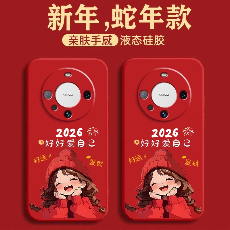 2026好好爱自己适用华为mate80pro手机壳70液态硅胶mate60pro红色p80保护套软mate50可爱女孩本命年防摔喜庆