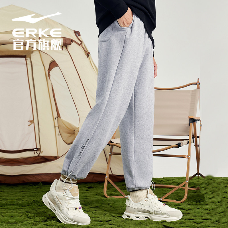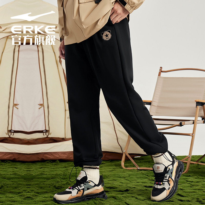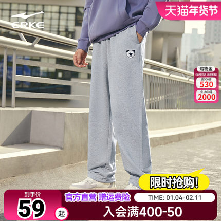 鸿星尔克休闲裤男秋季直筒宽松运动裤男士抽绳针织裤熊猫卫裤男子