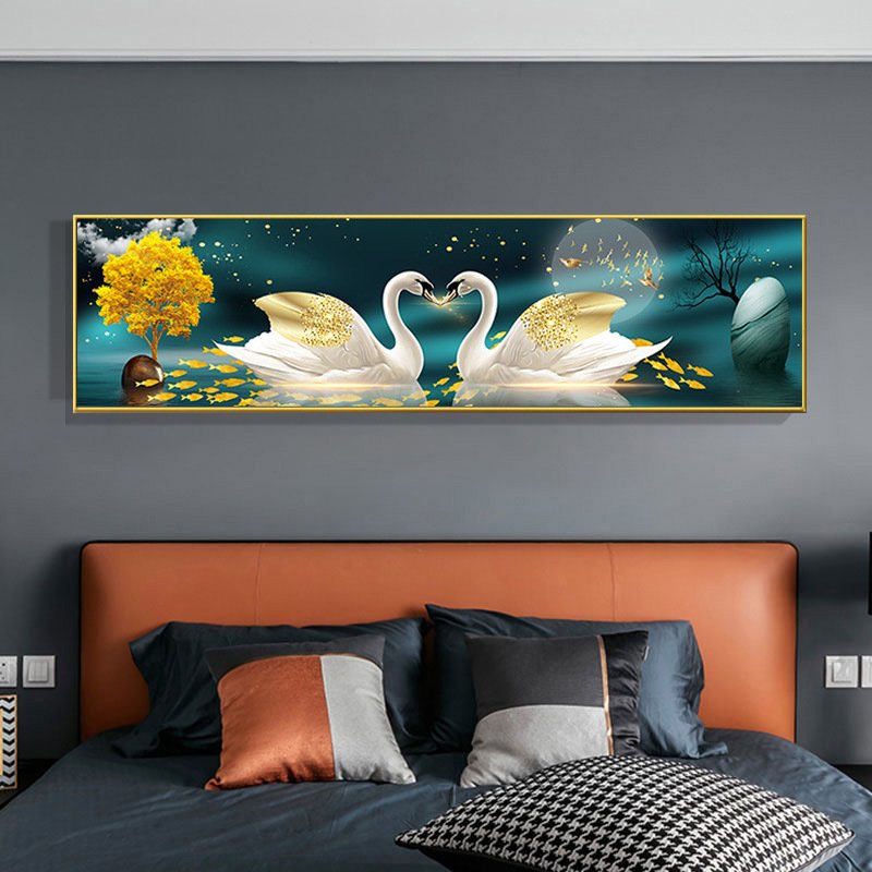 5d钻石画2021新款天鹅情侣系列卧室床头画点钻十字绣满钻贴钻石绣