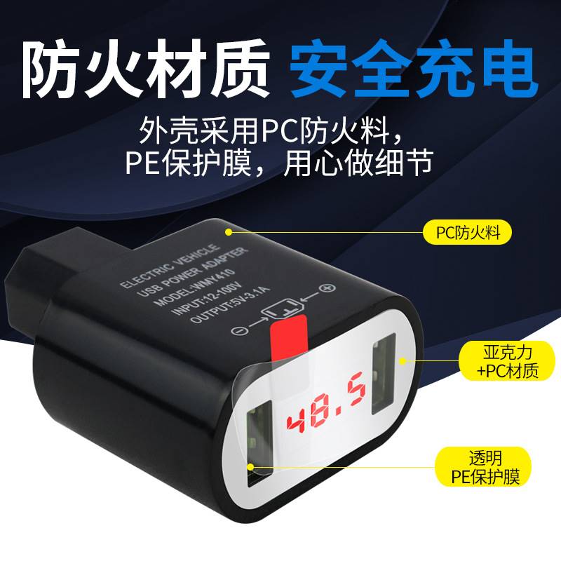 外卖电动车手机充电器超级快充转接头USB接口48V60V72V电动车手机充电器雅迪台铃爱玛新日电瓶车载智能5V2A