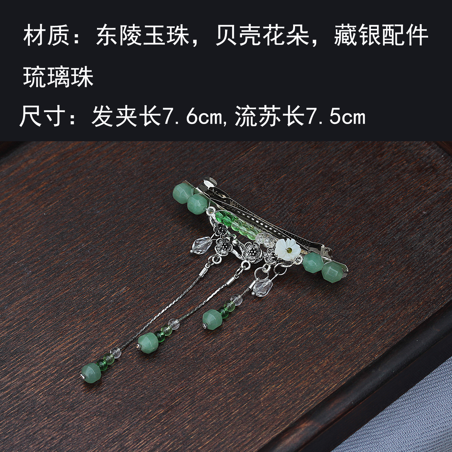 原创古风东陵玉流苏弹簧夹汉服旗袍珍珠发夹后脑勺半扎头饰发量少