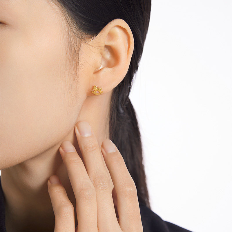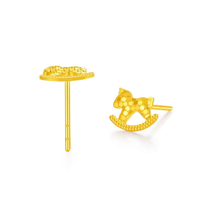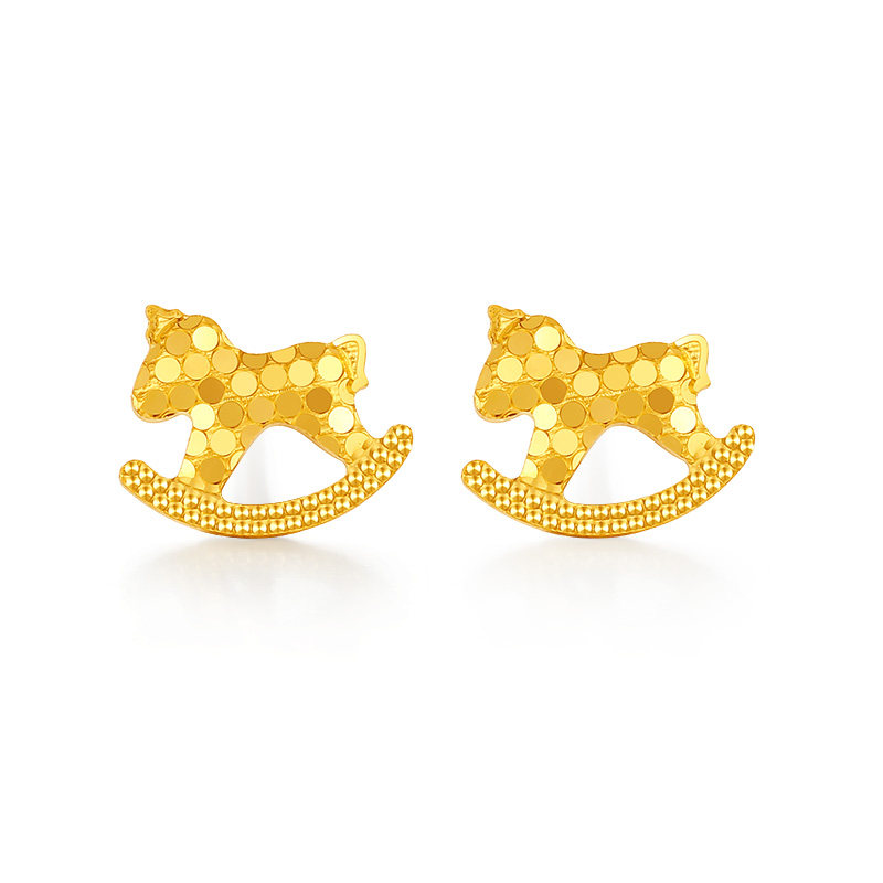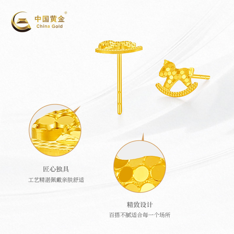 【中国黄金官方店】黄金耳饰5G小马足金耳饰新品百搭送女友