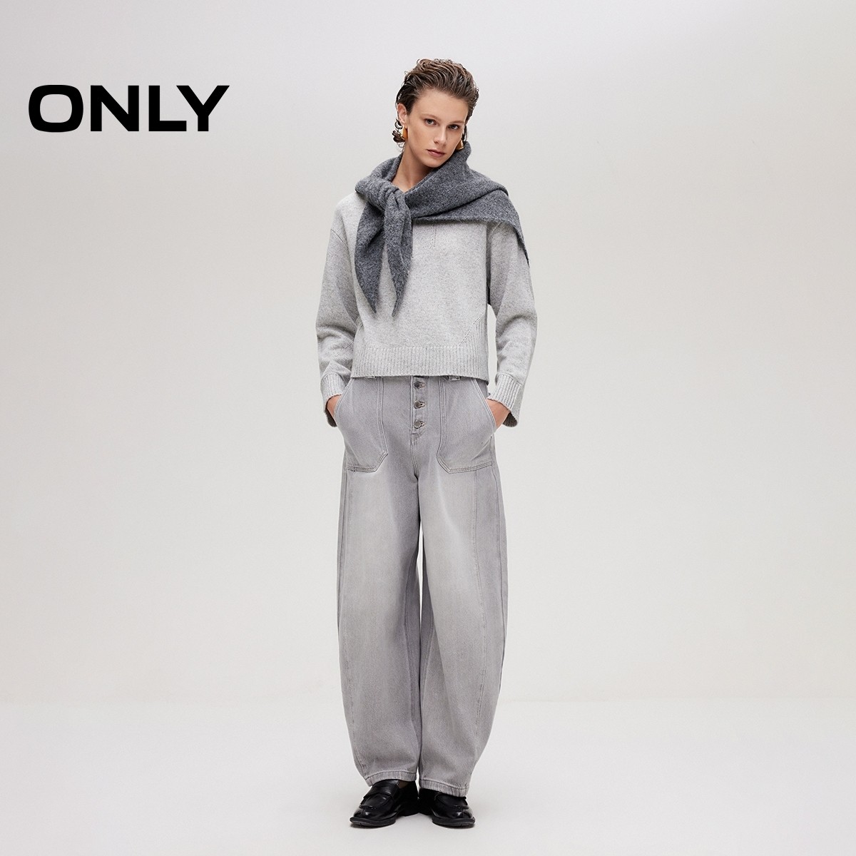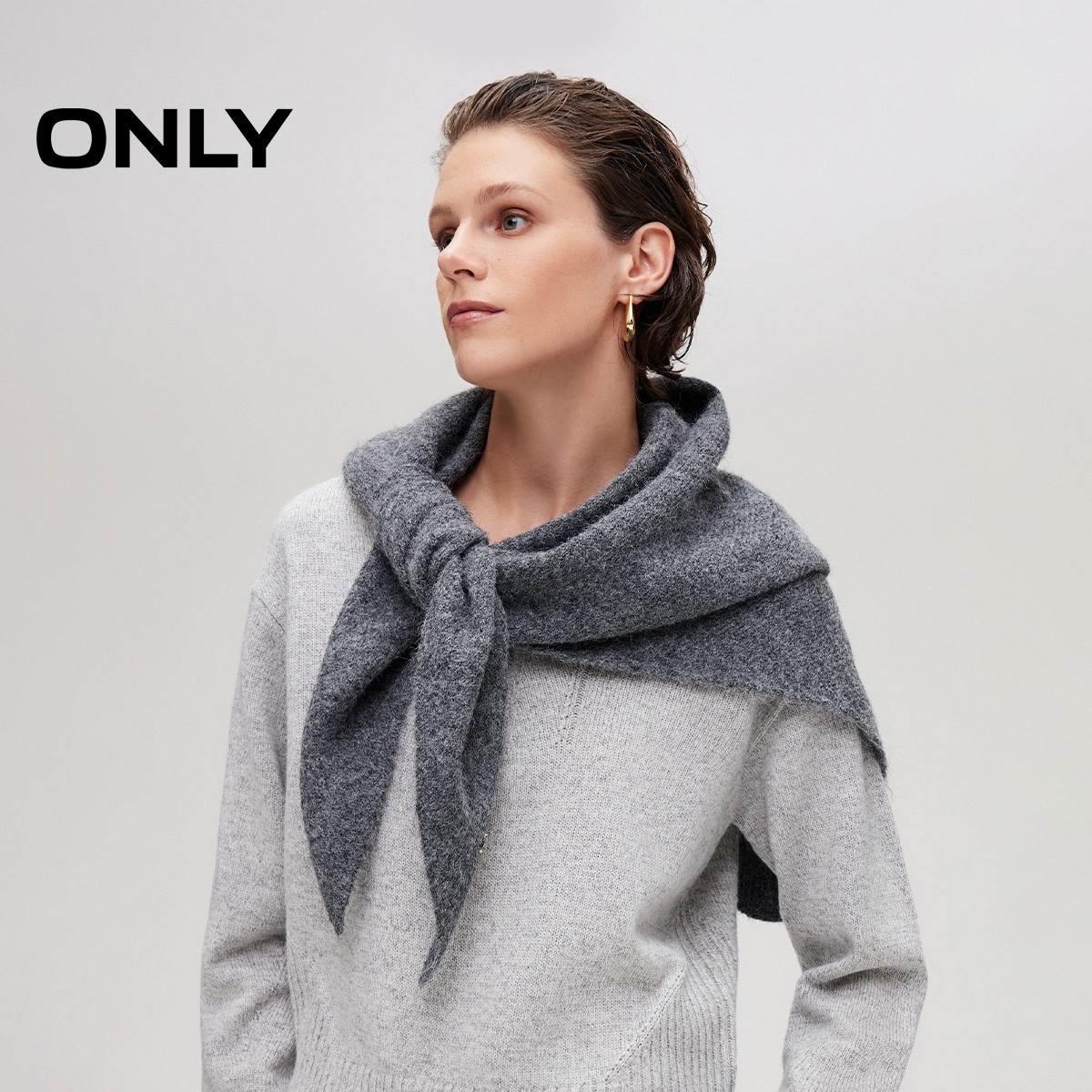 ONLY2025冬季新款柔软亲肤棉绒材质保暖配饰三角巾灰色围巾女
