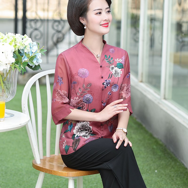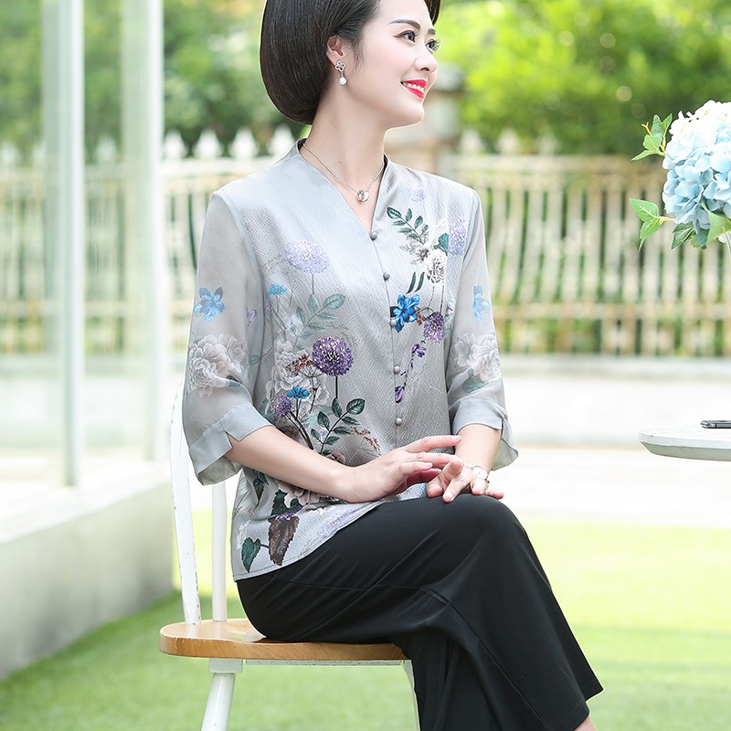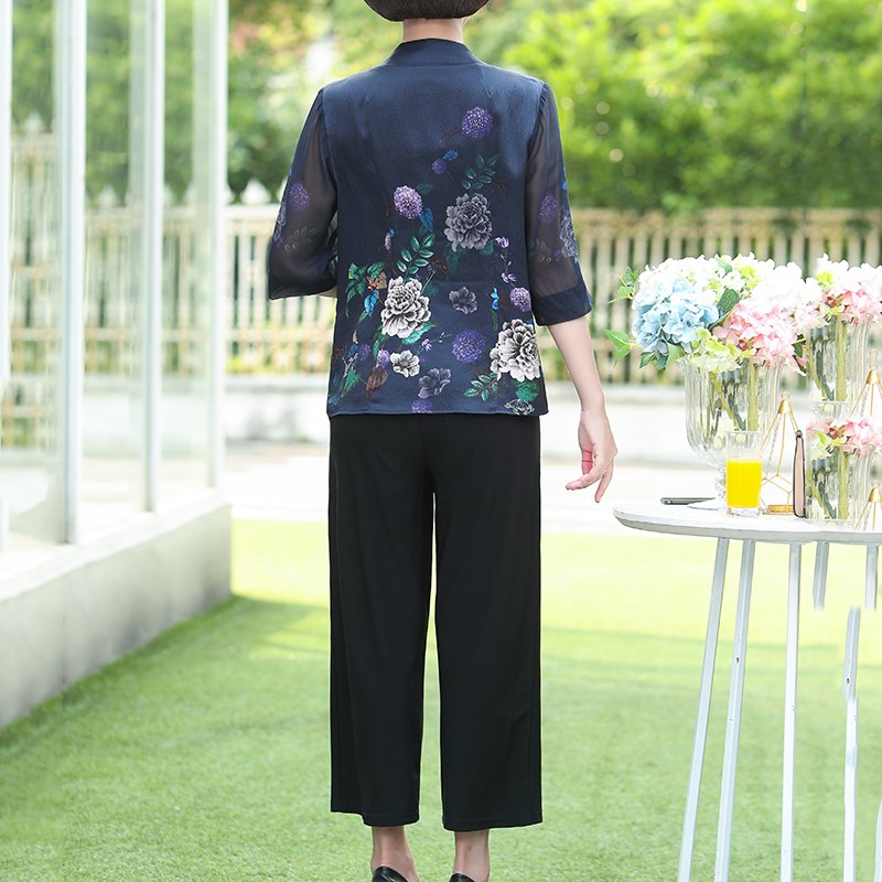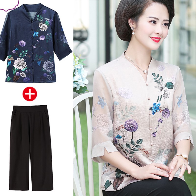 妈妈夏装小衫两件套装2024新款阔太太洋气高贵中老年女装真丝上衣